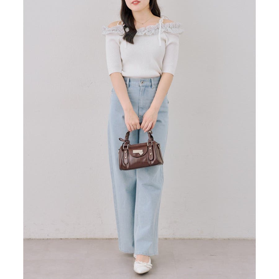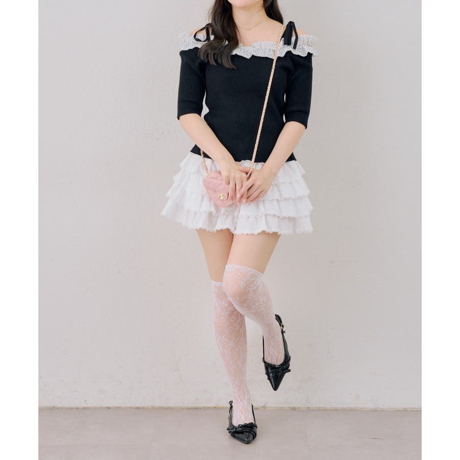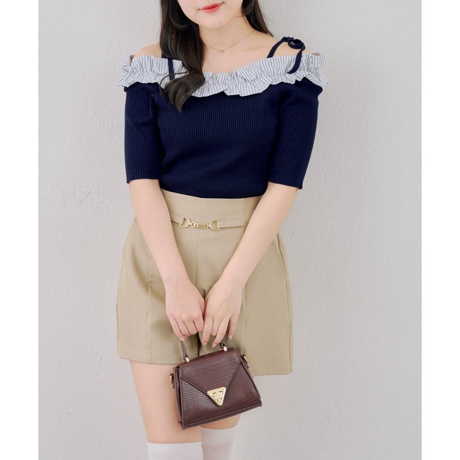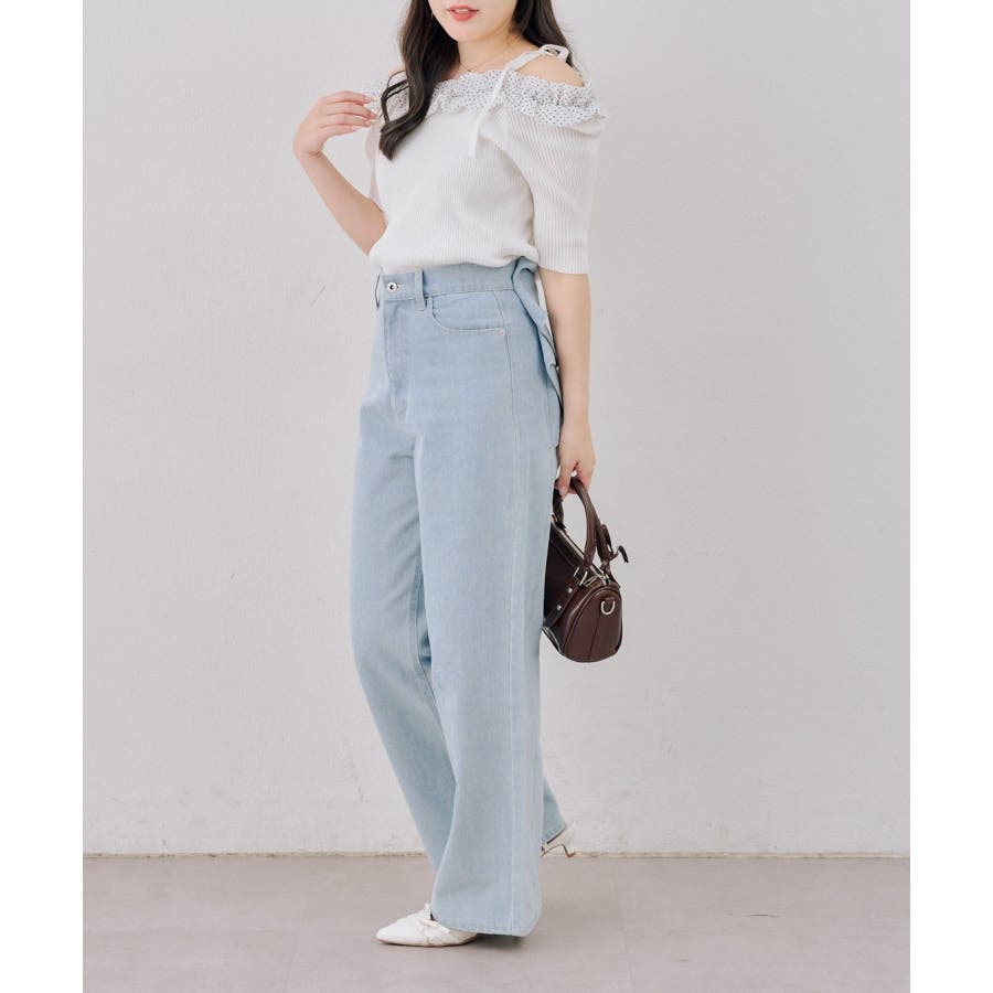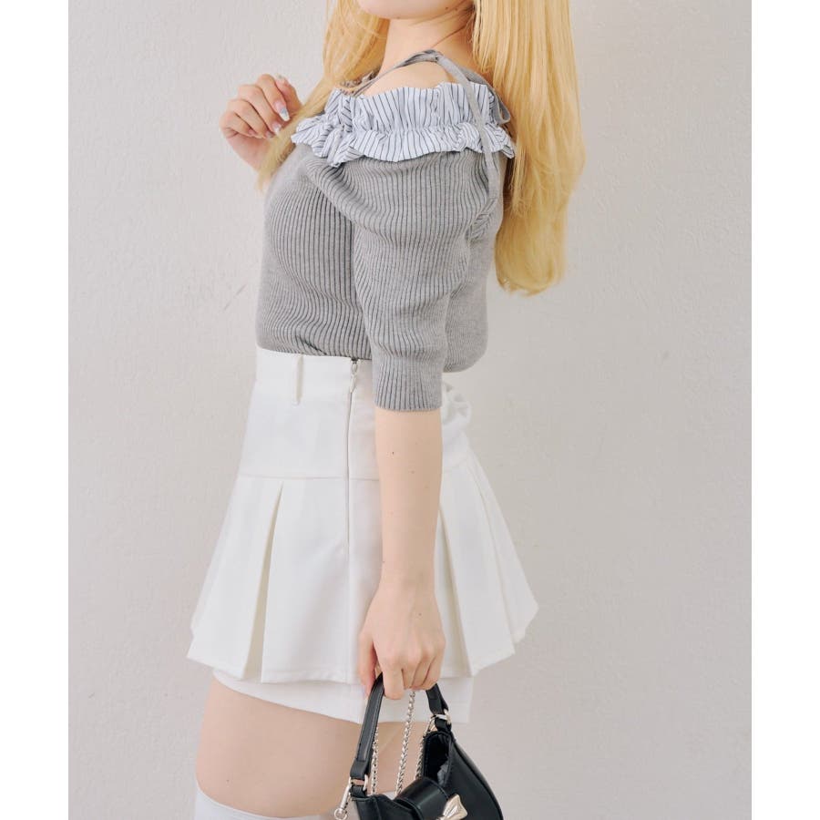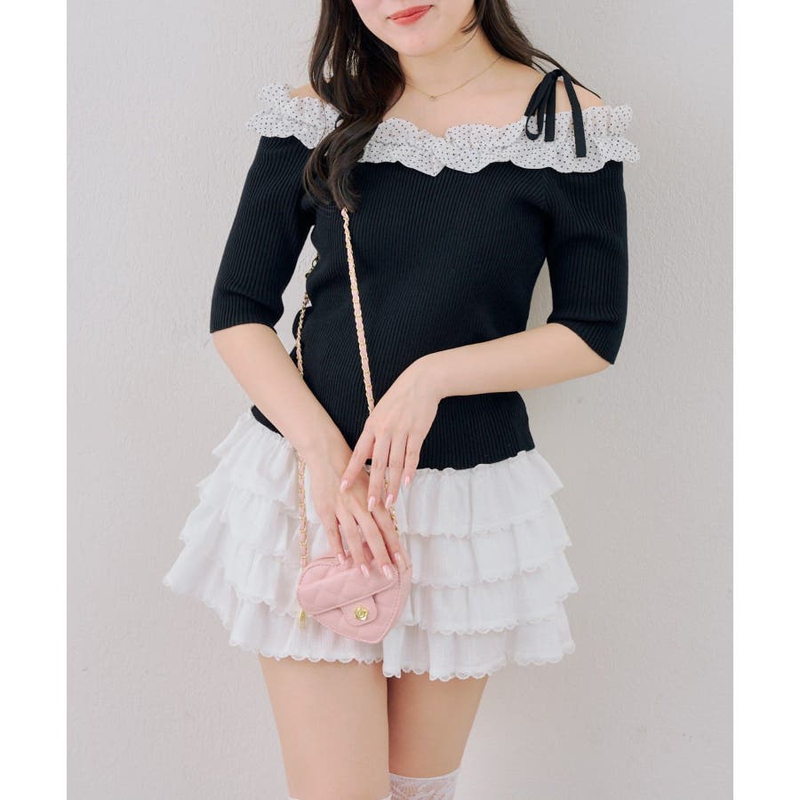オフショルフリルニットプルオーバー
