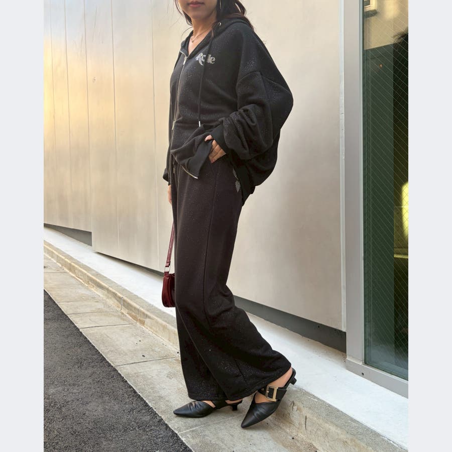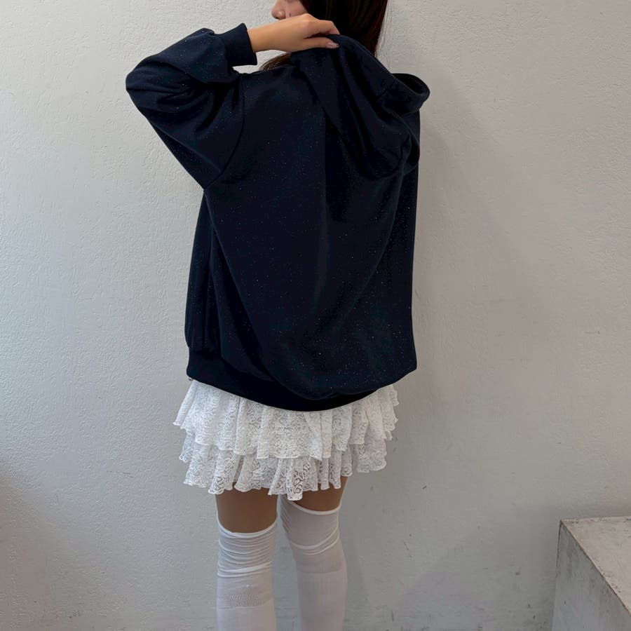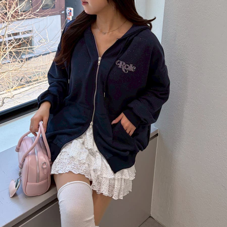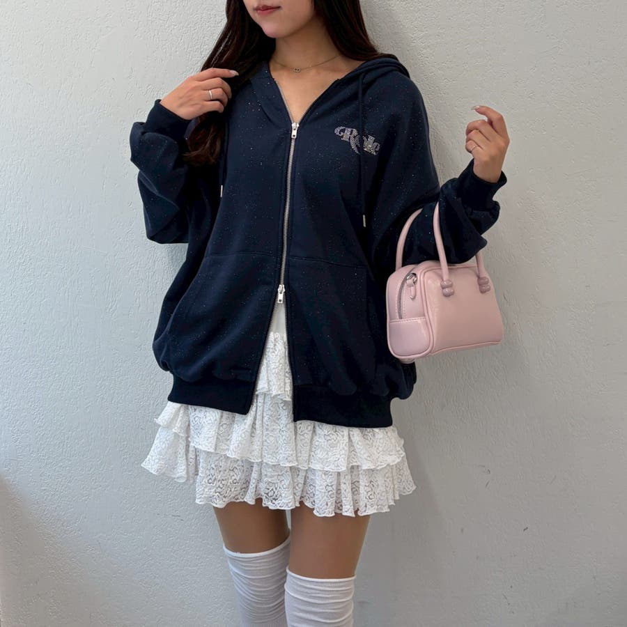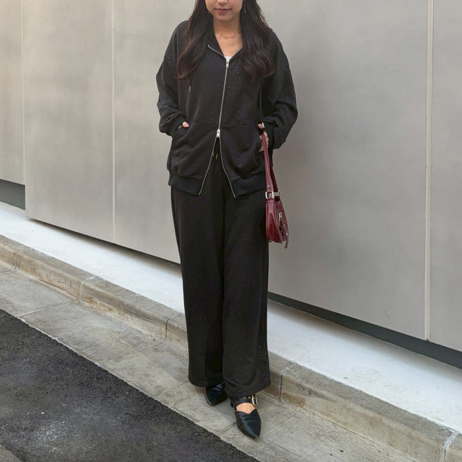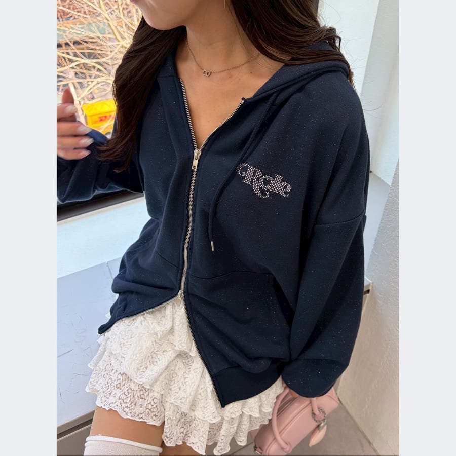 ・全体に散りばめられたラメが、動きに合わせて上品に煌めくジップアップパーカー