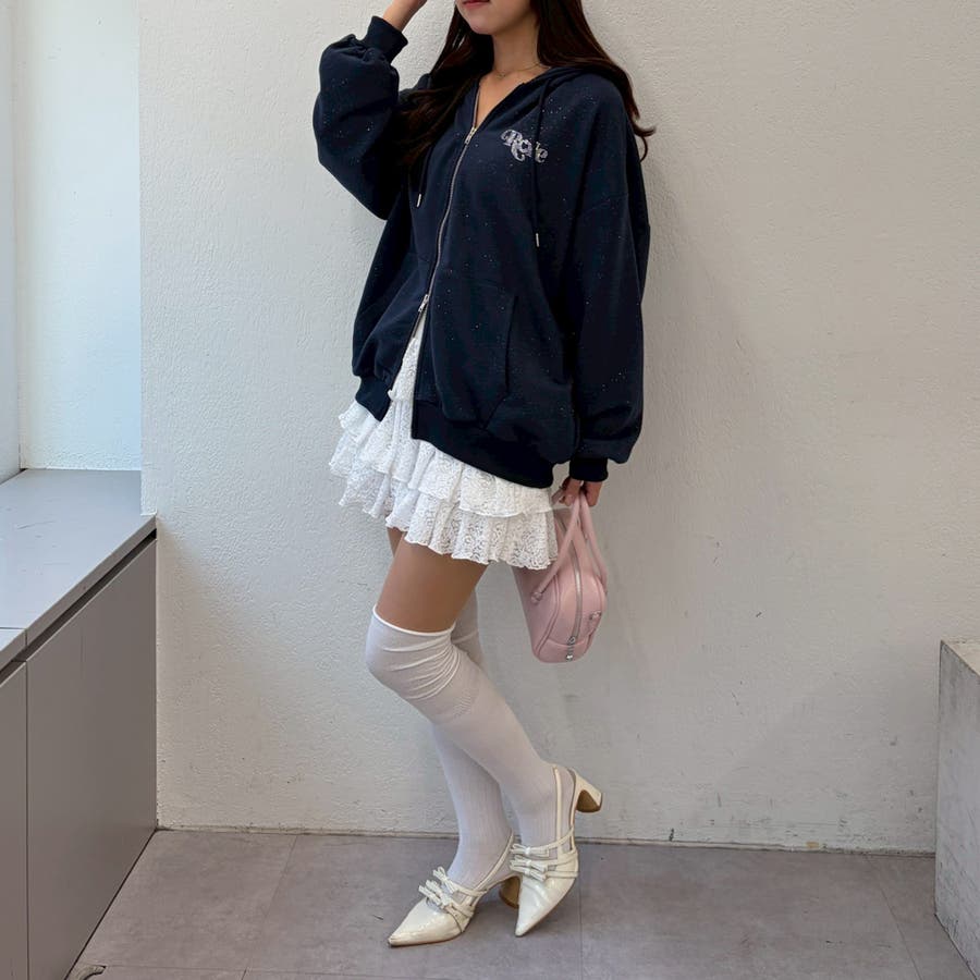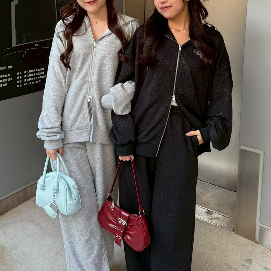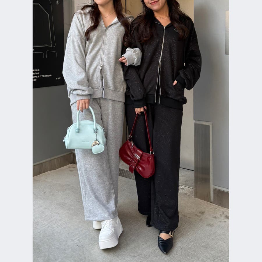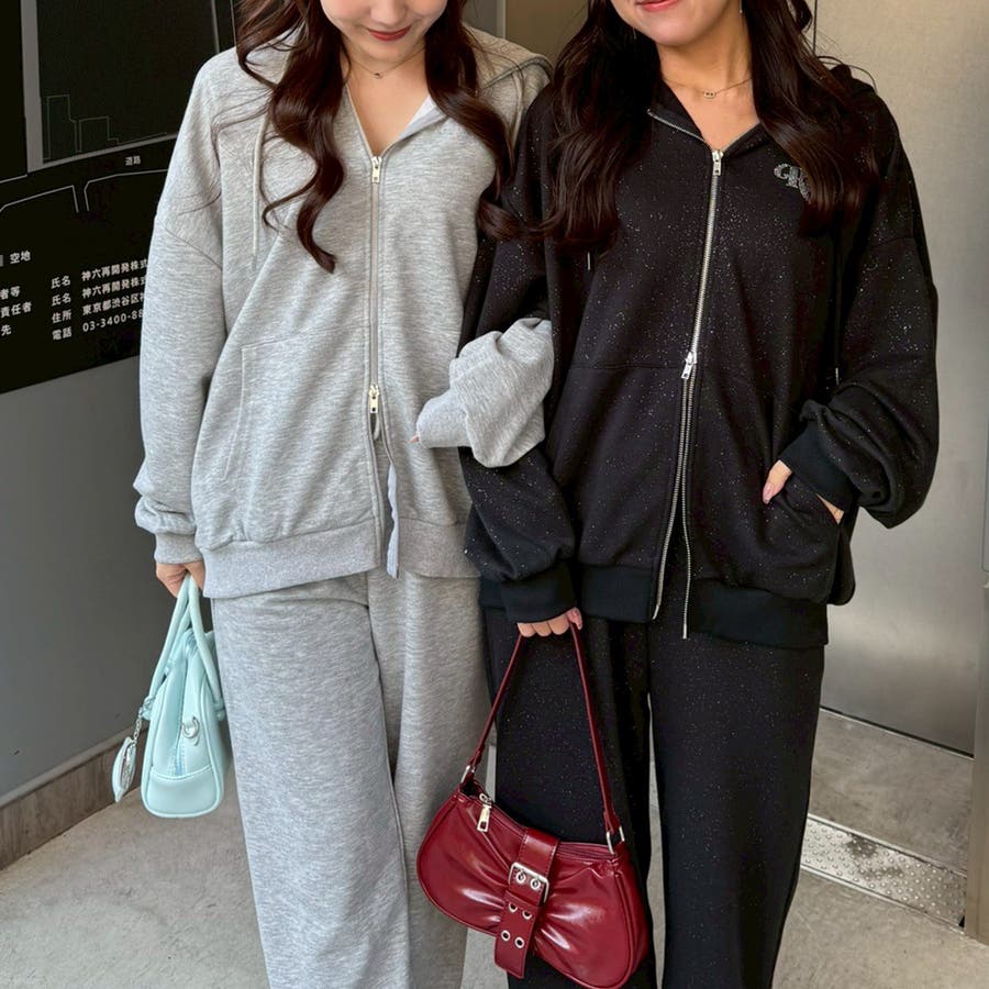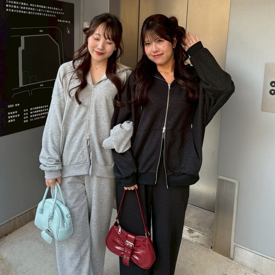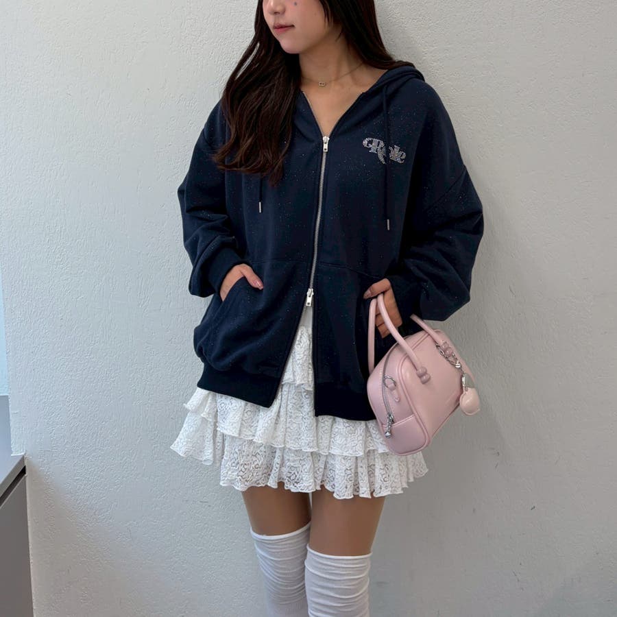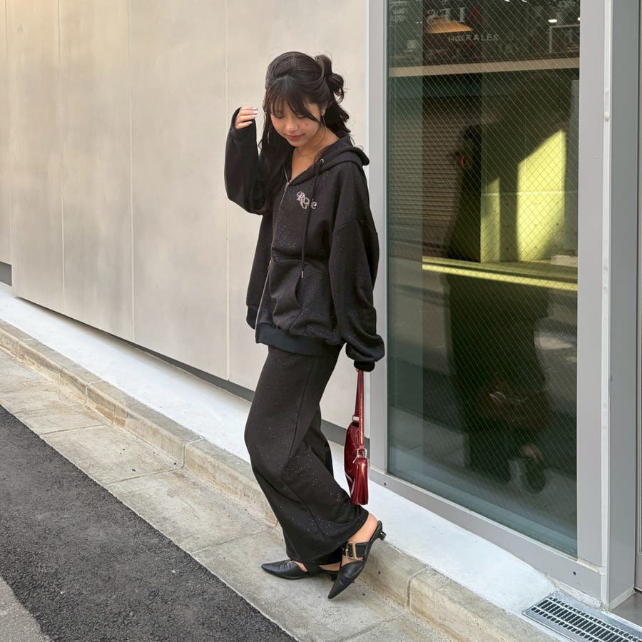 ・全体に散りばめられたラメが、動きに合わせて上品に煌めくジップアップパーカー