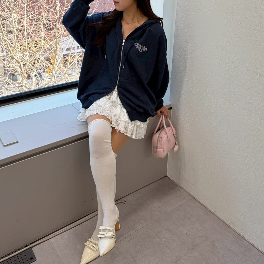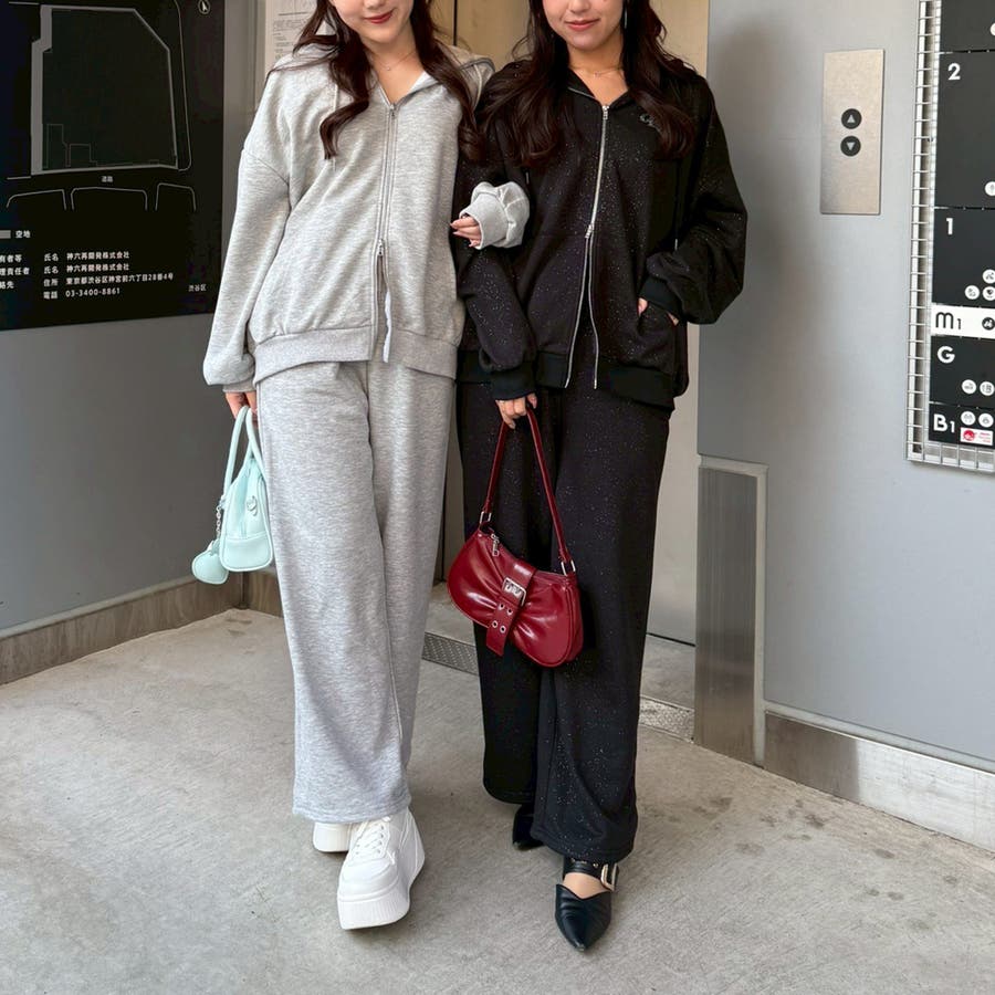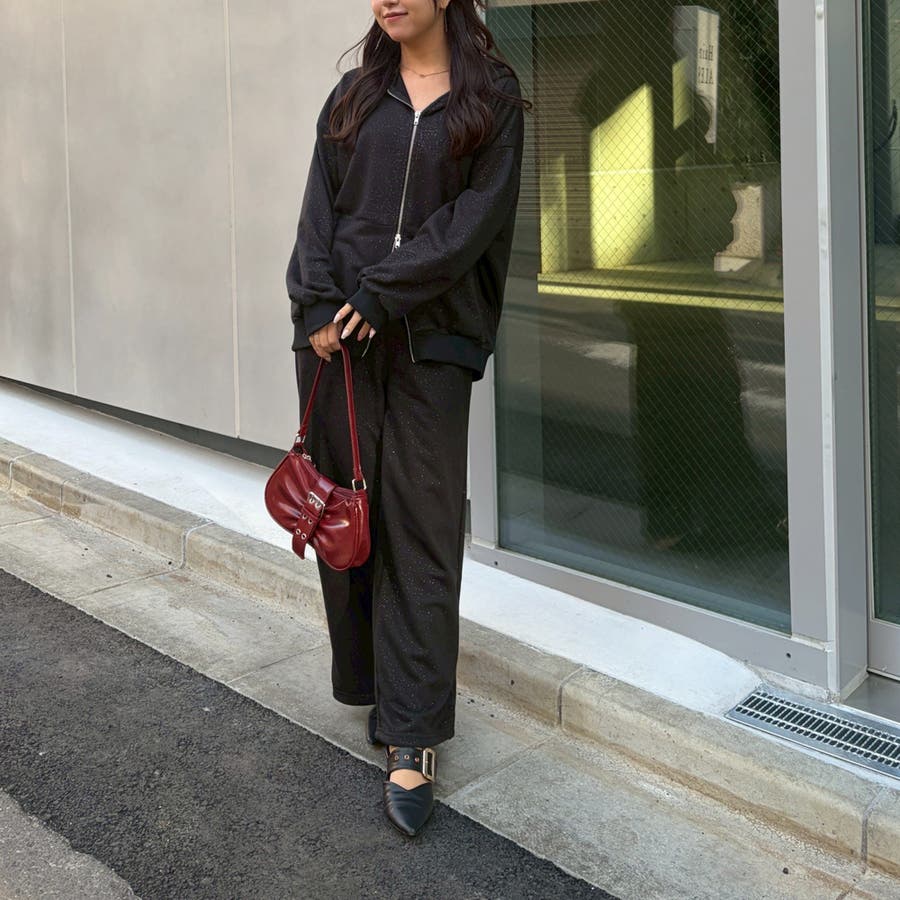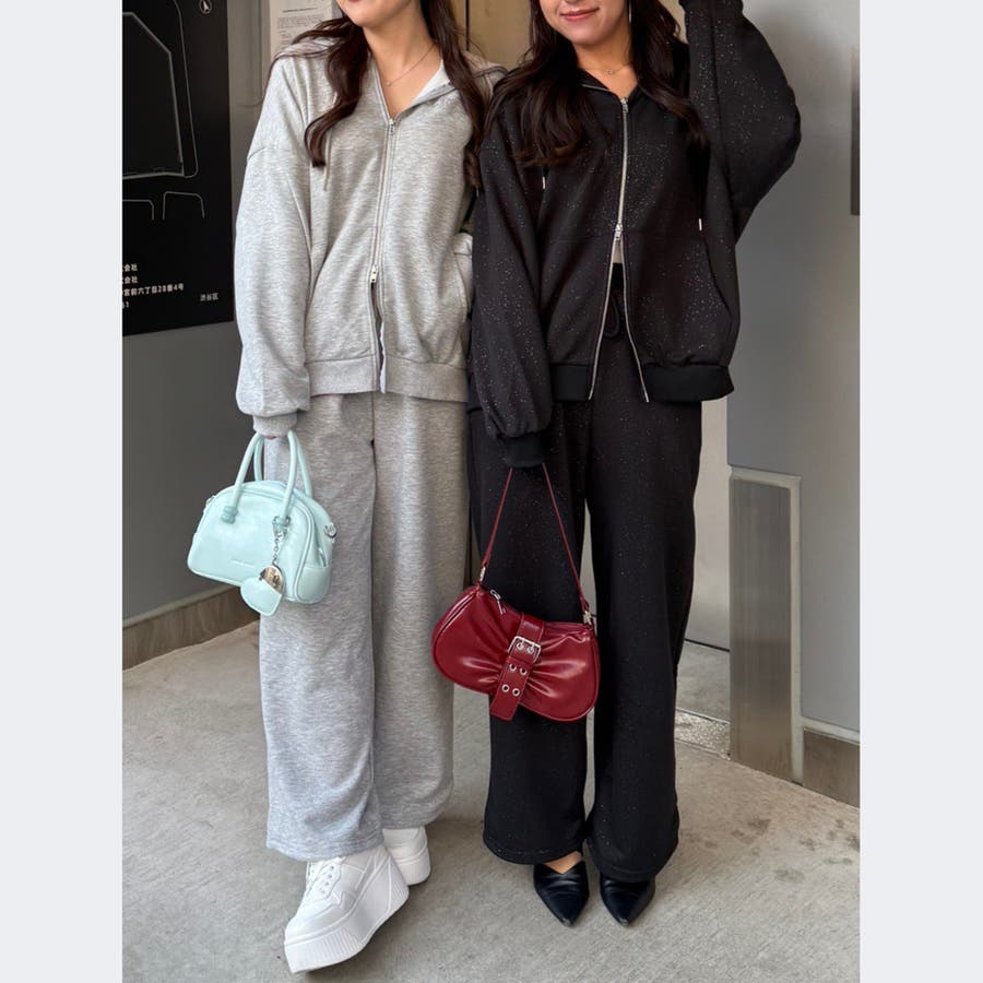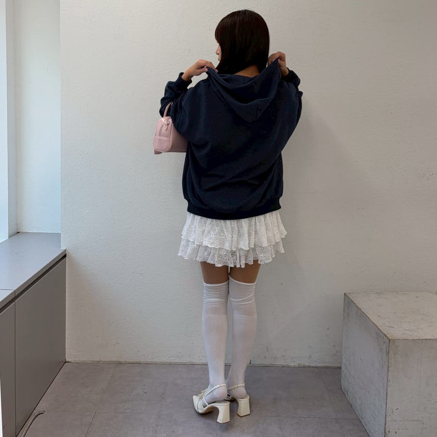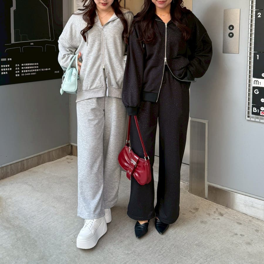 ・全体に散りばめられたラメが、動きに合わせて上品に煌めくジップアップパーカー