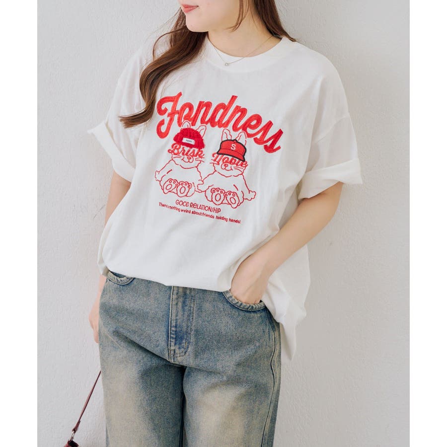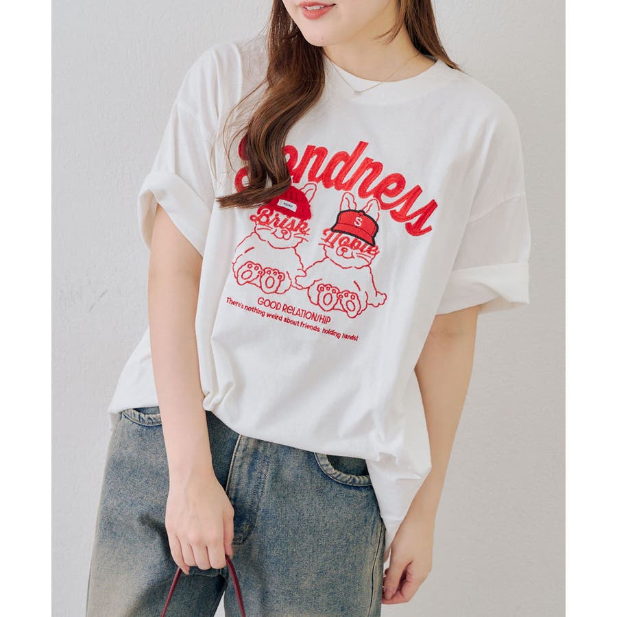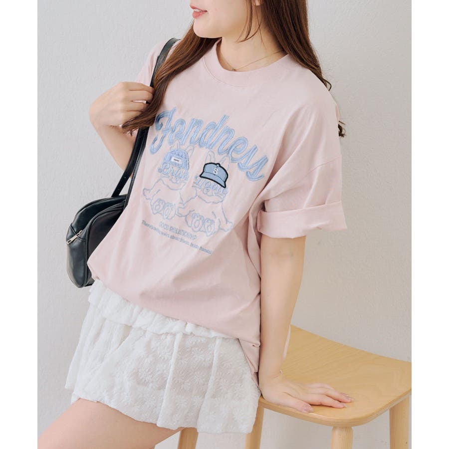 ・遊び心あふれるウサギの刺繍がポイントのTシャツ