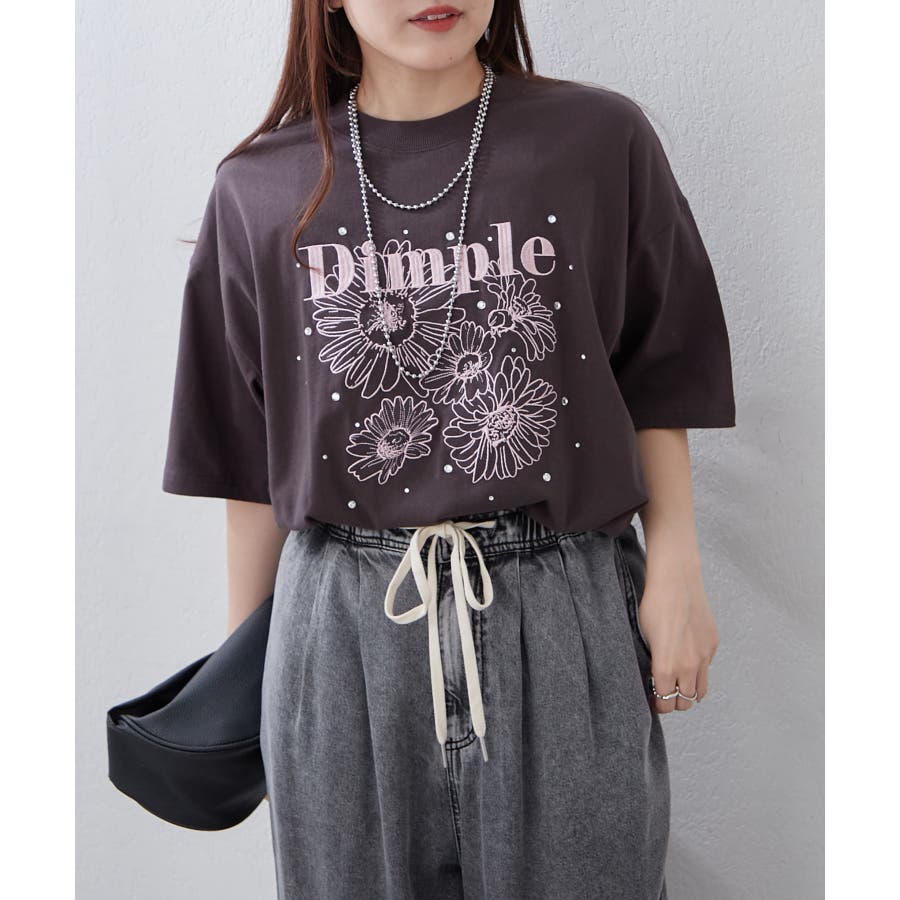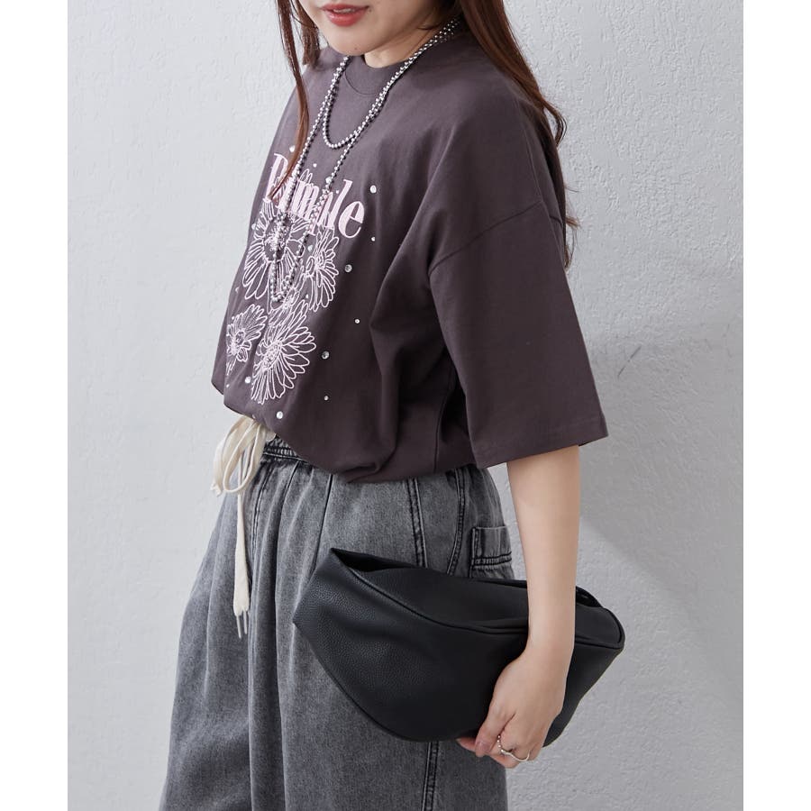 ・さりげないきらめきを添える装飾が、カジュアルながらも女性らしさを演出するTシャツ