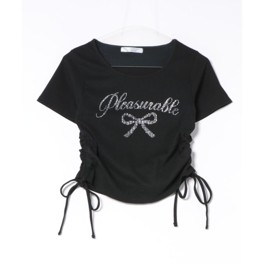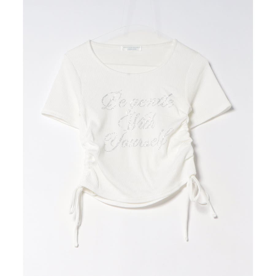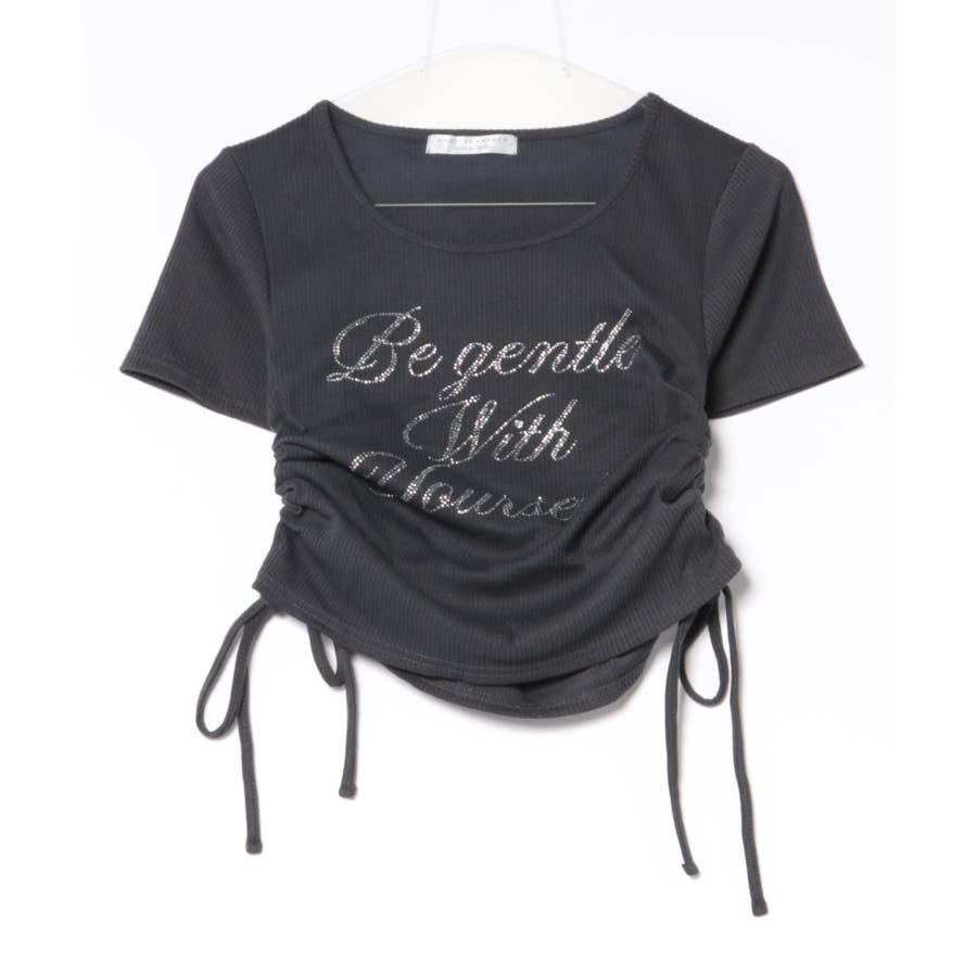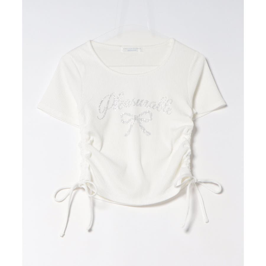 アソートラインストーンロゴ脇ギャザーTシャツ