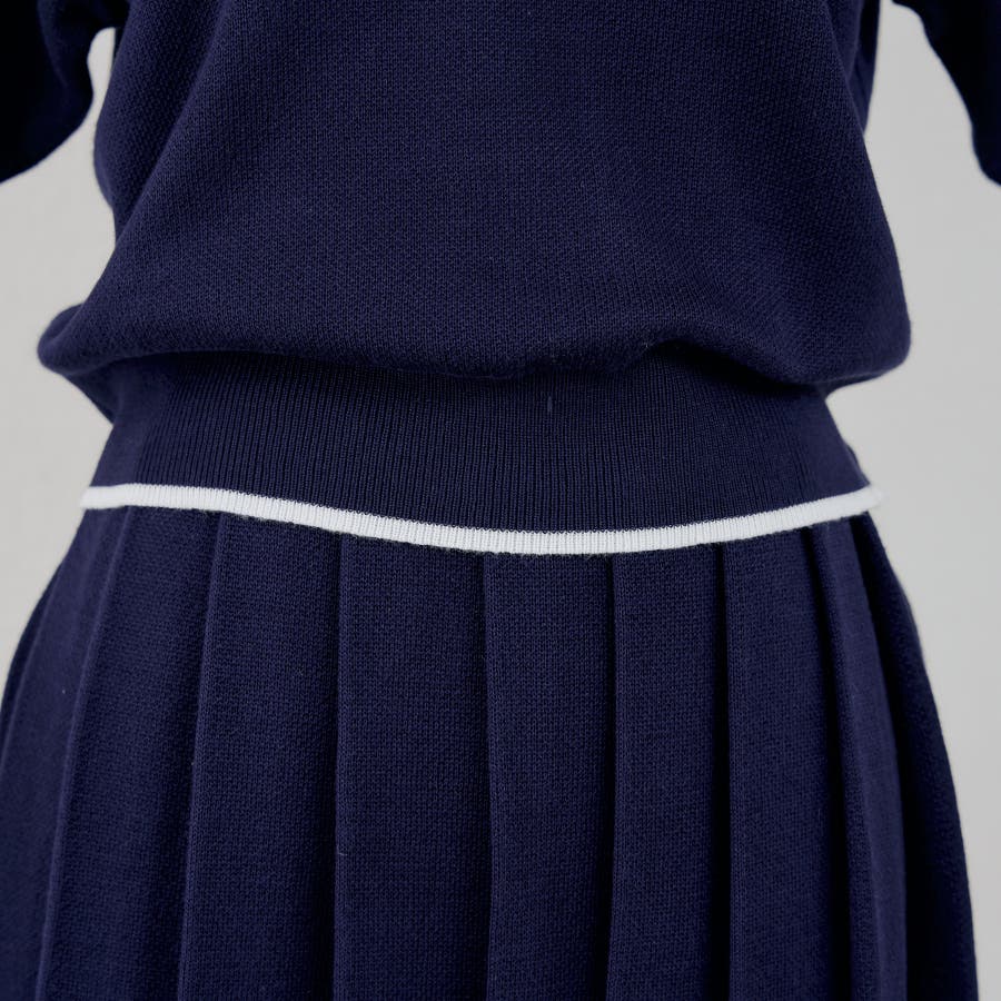 ・上品な着こなしが叶う、ニットポロシャツとプリーツスカートのセットアップ