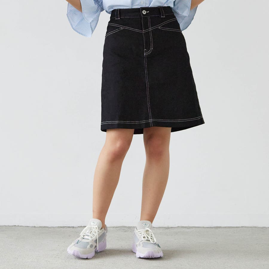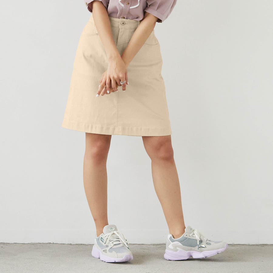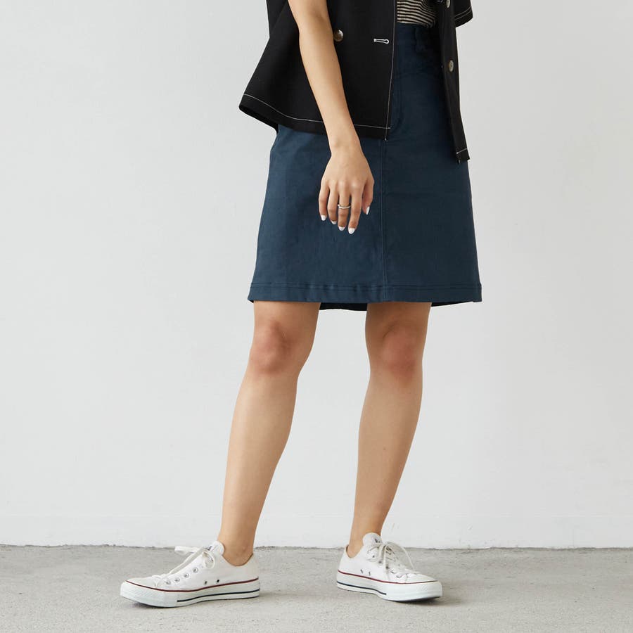 どんなトップスとも合わせやすいベーシックな台形スカートなので、一枚持っておくと便利!短すぎない丈感も嬉しい。