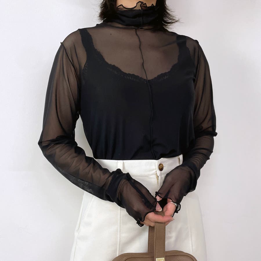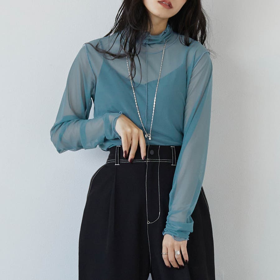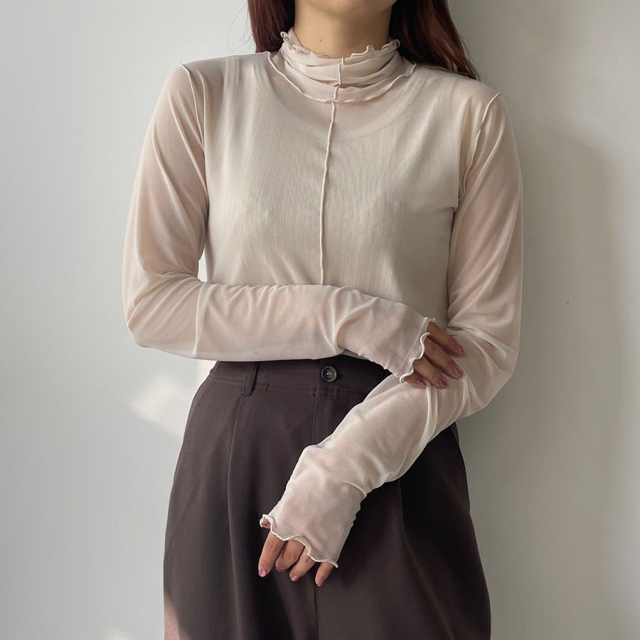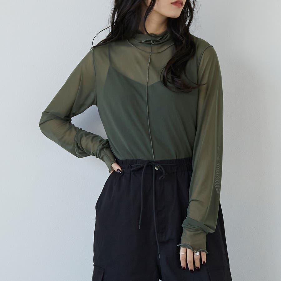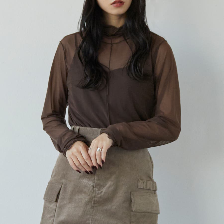 メッシュの透け感とAWカラーでレイヤードが楽しくなる1枚。