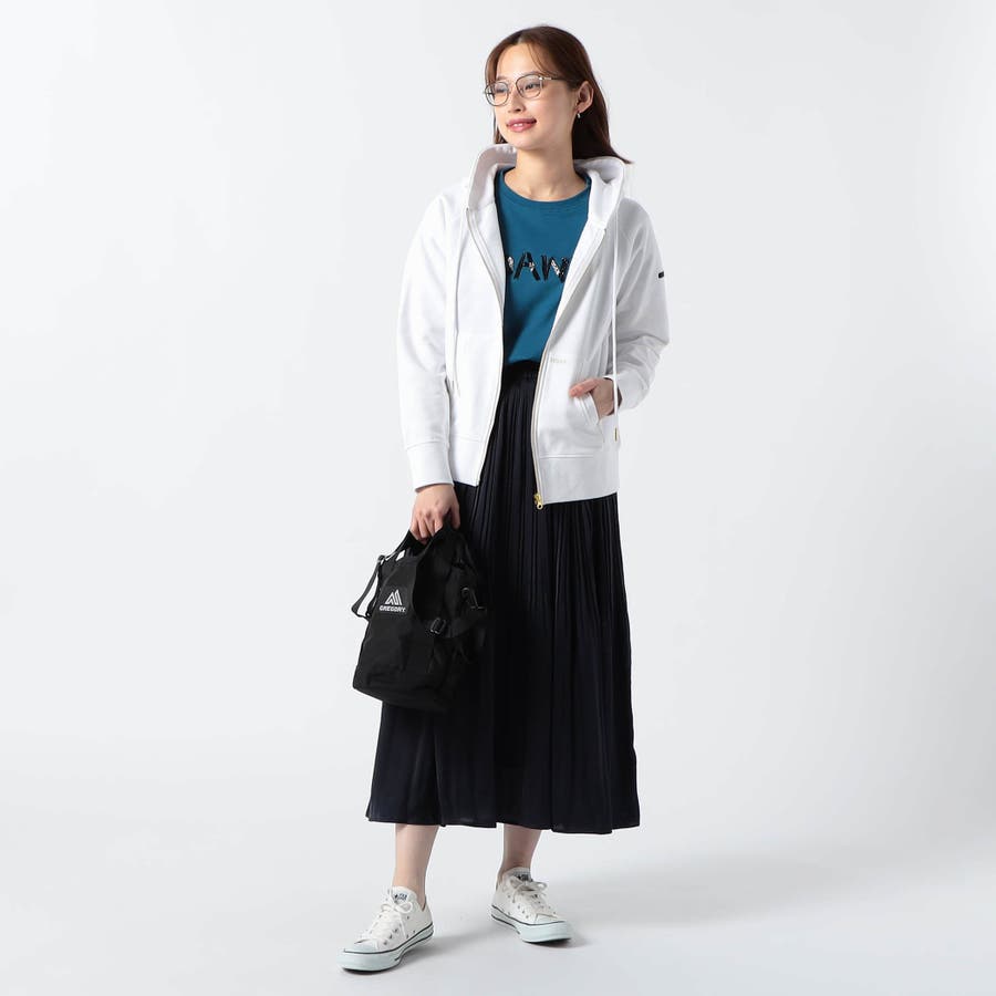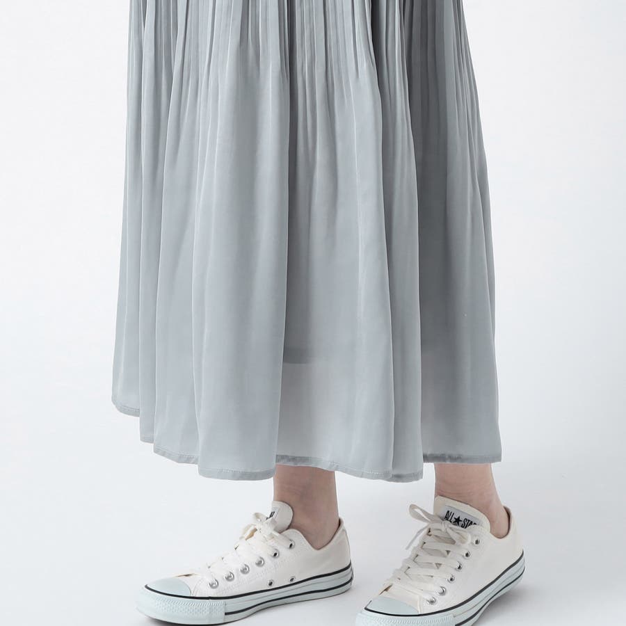 広がりが軽やかで落ち感のあるサテン素材なので、通勤ベーシックスタイルはもちろん、Tシャツやトレーナー・フ―ディーなどのカジュアルアイテムとの相性も抜群です。