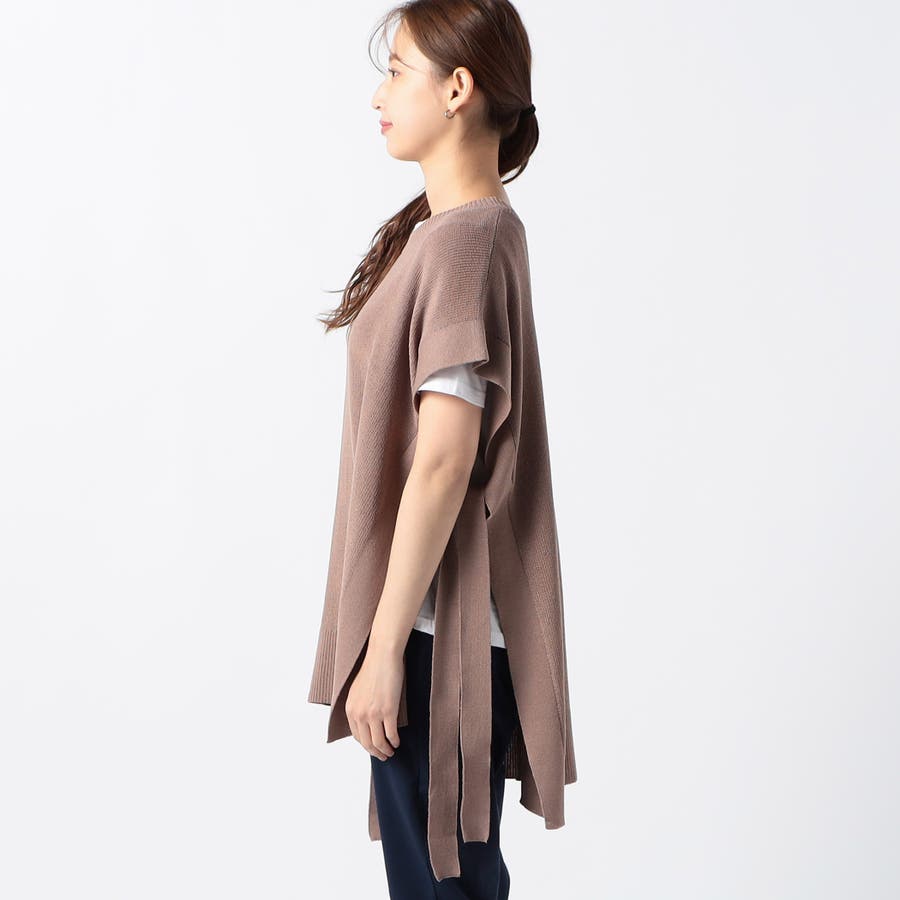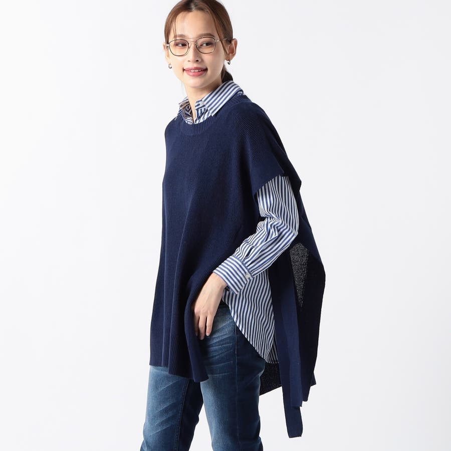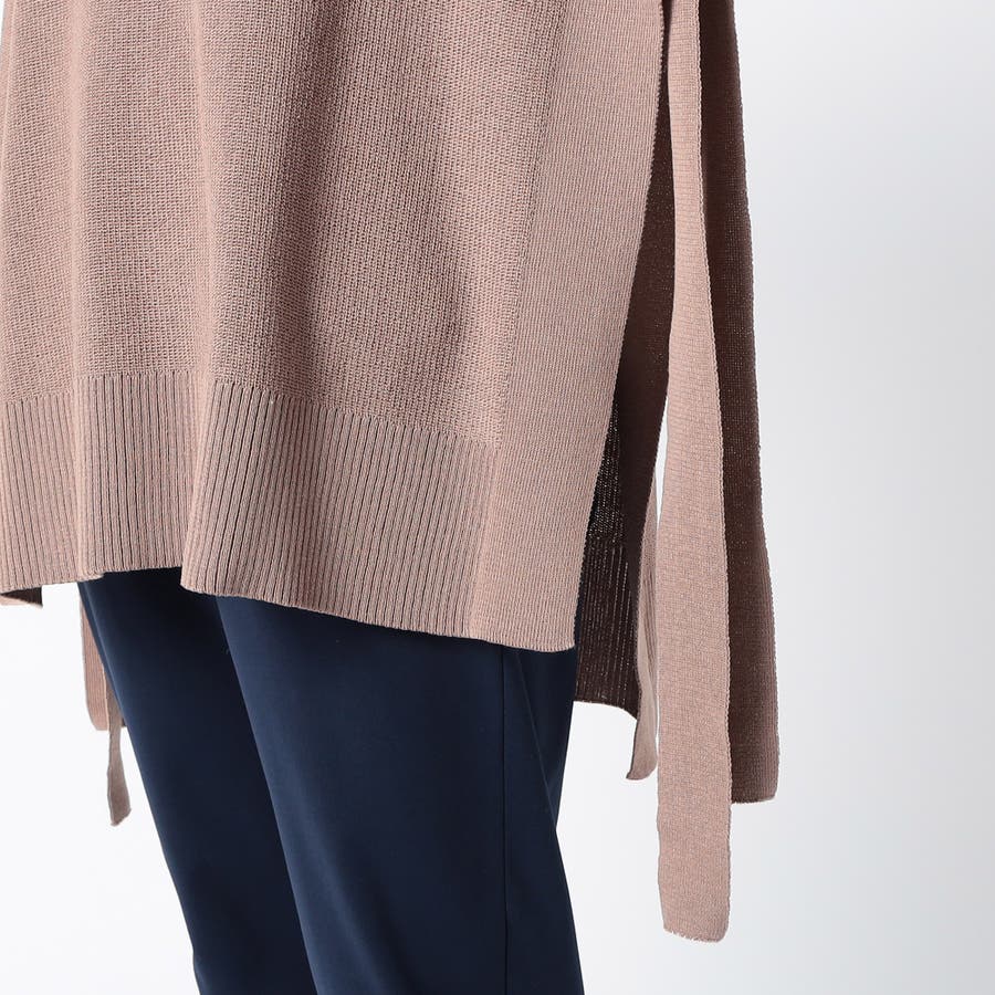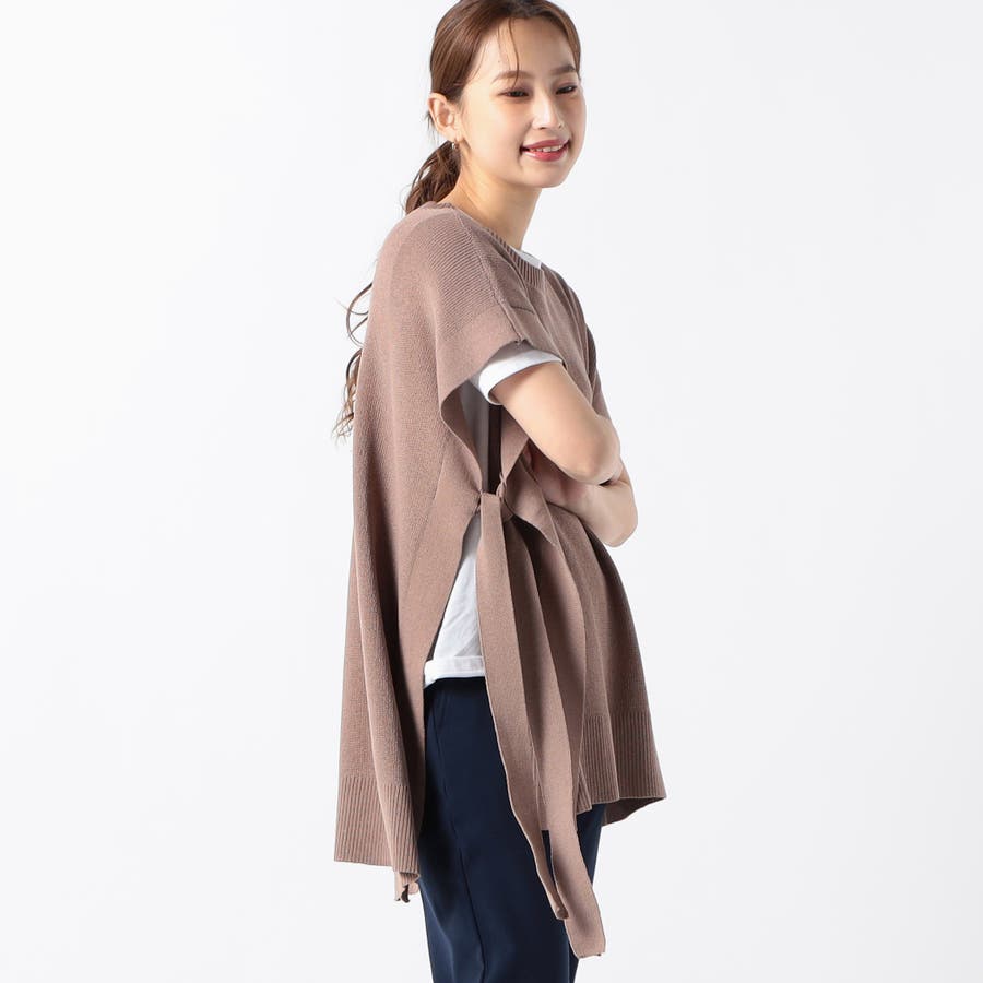 ポンチョのようにかぶって脇のニットリボンを結んでラフに着用出来ます。