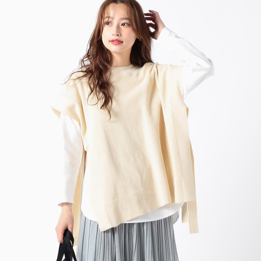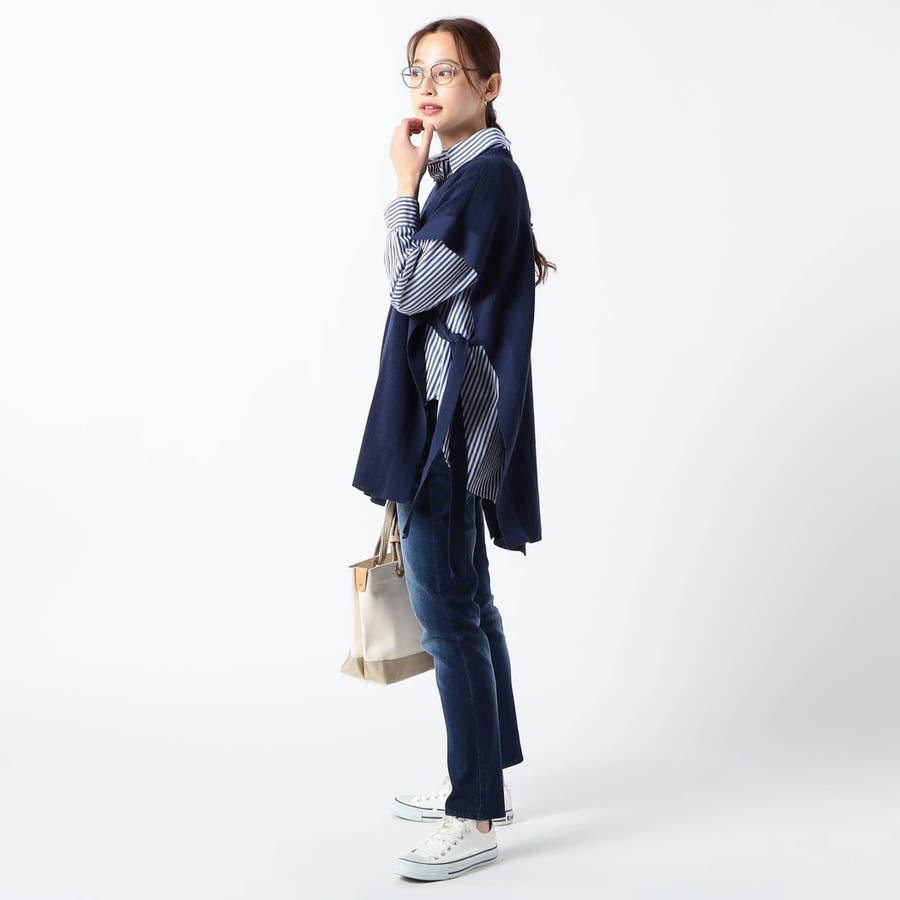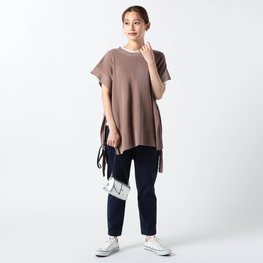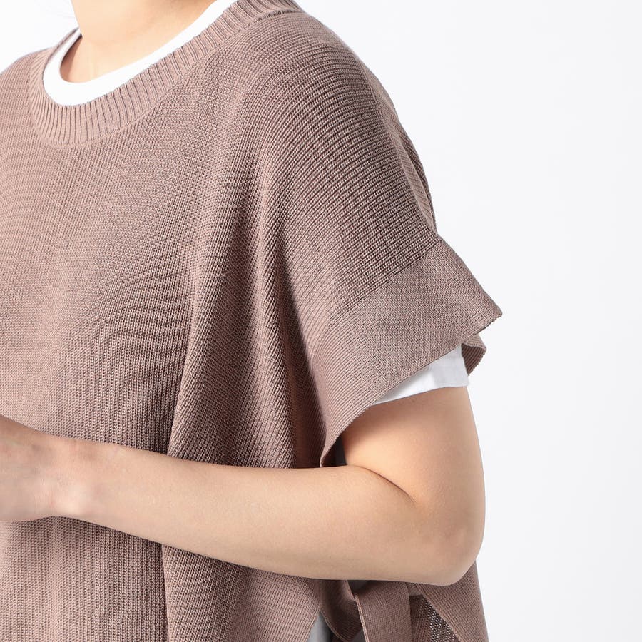 ポンチョのようにかぶって脇のニットリボンを結んでラフに着用出来ます。