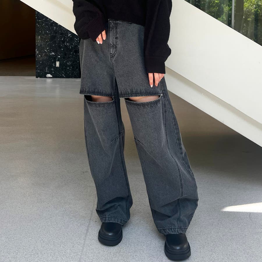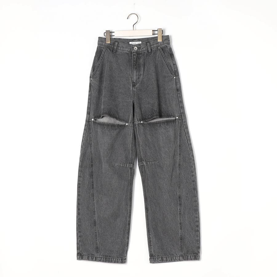 スリットと丸みのあるシルエットがトレンド感のあるデニムです。