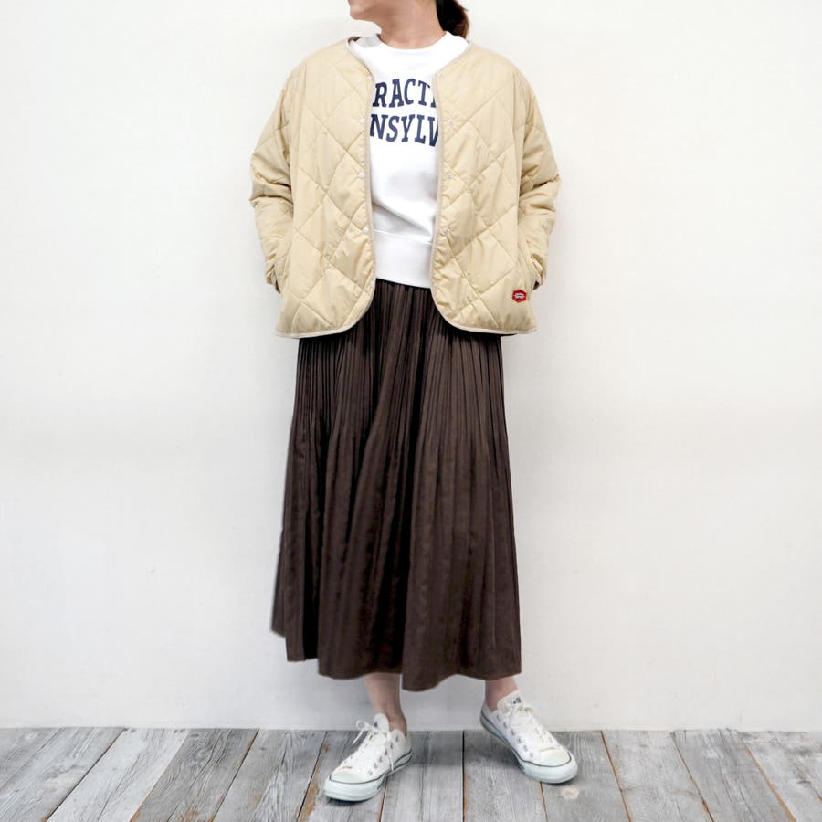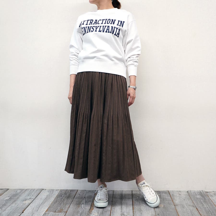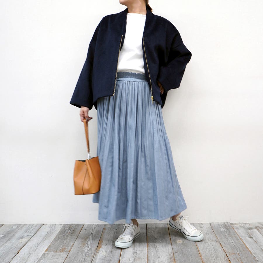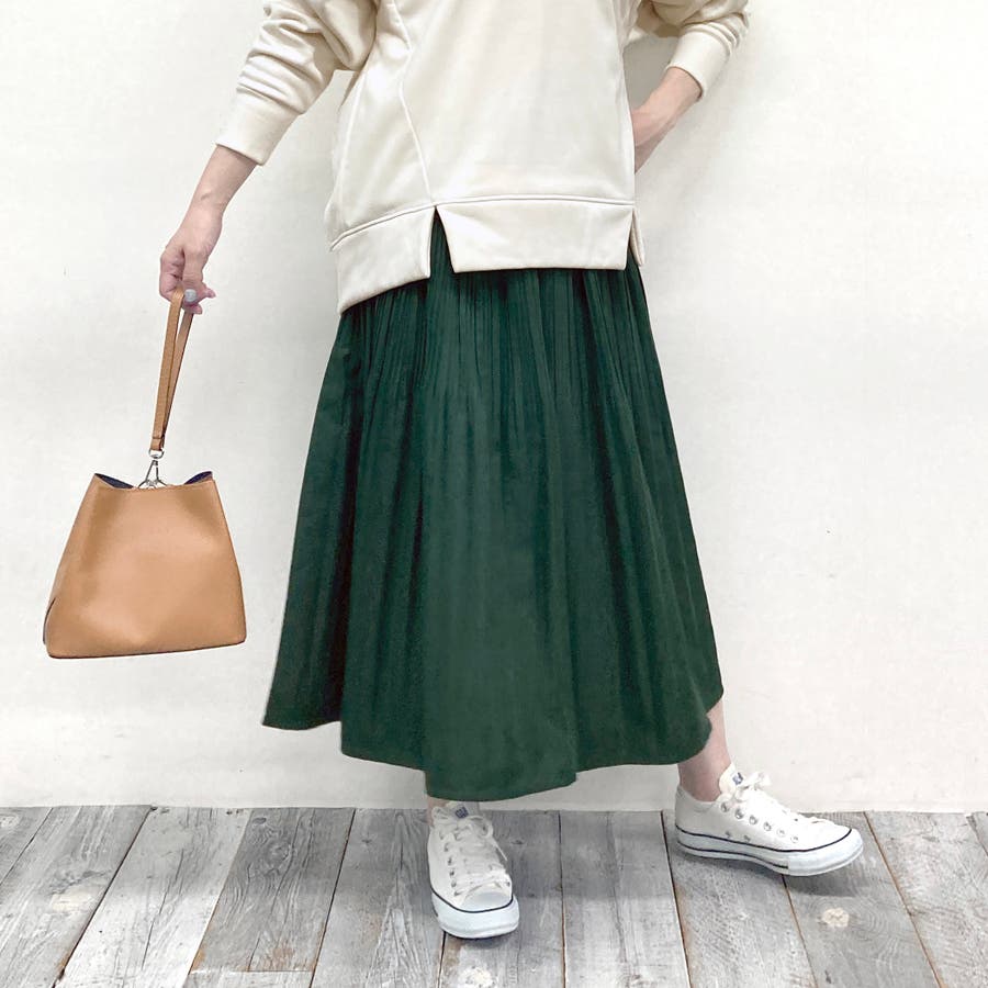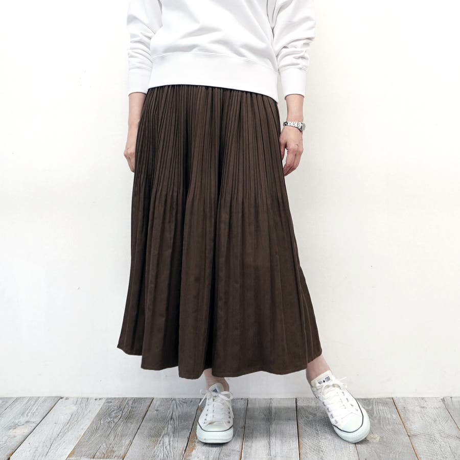 極細の畝が特徴のミジンコール素材を使用したプリーツスカートは、秋の気分を盛り上げてくれるアイテムになること間違いなし。