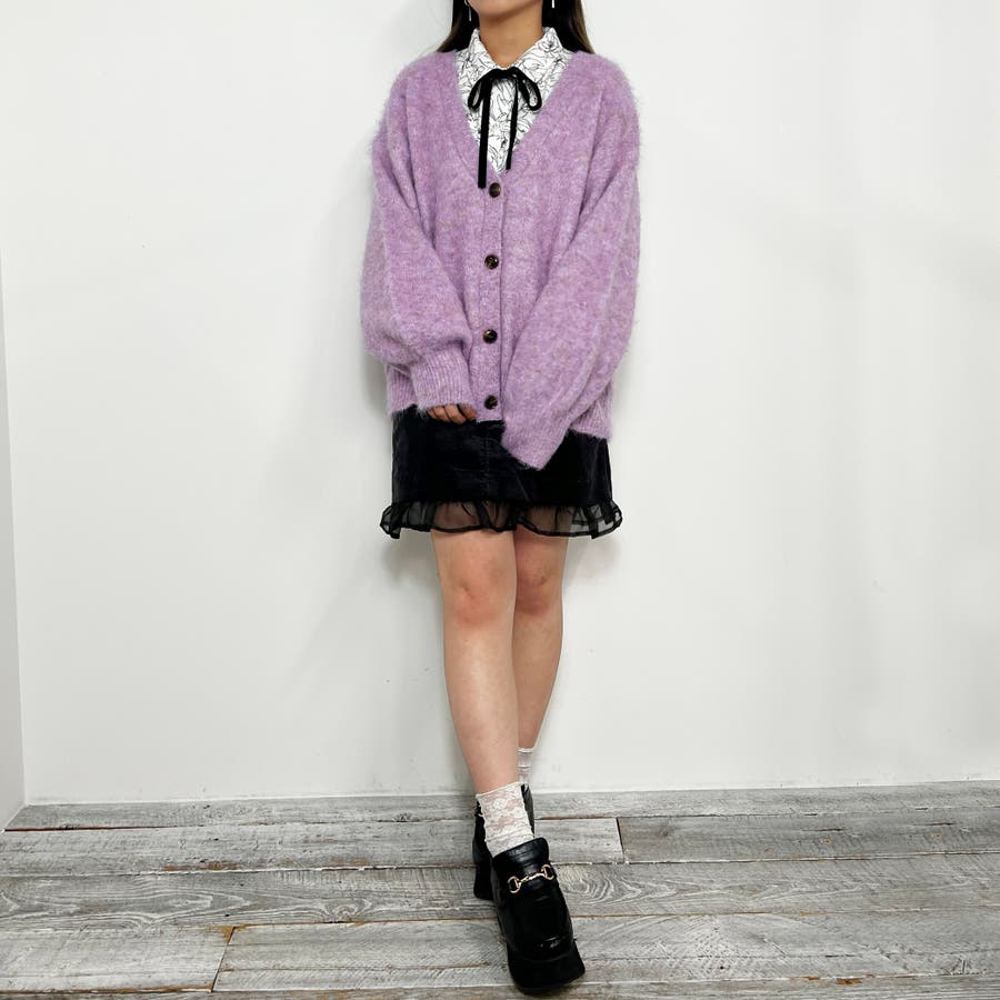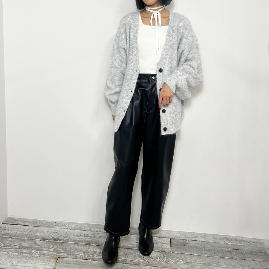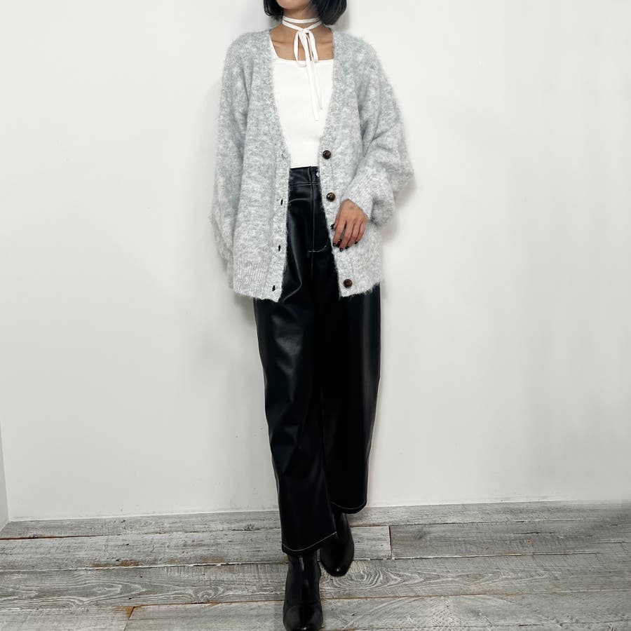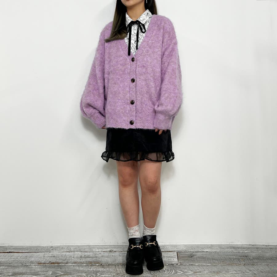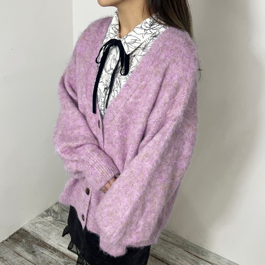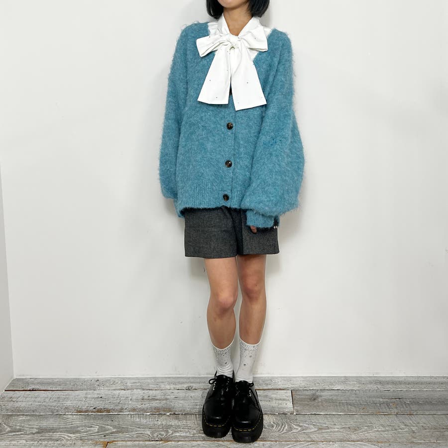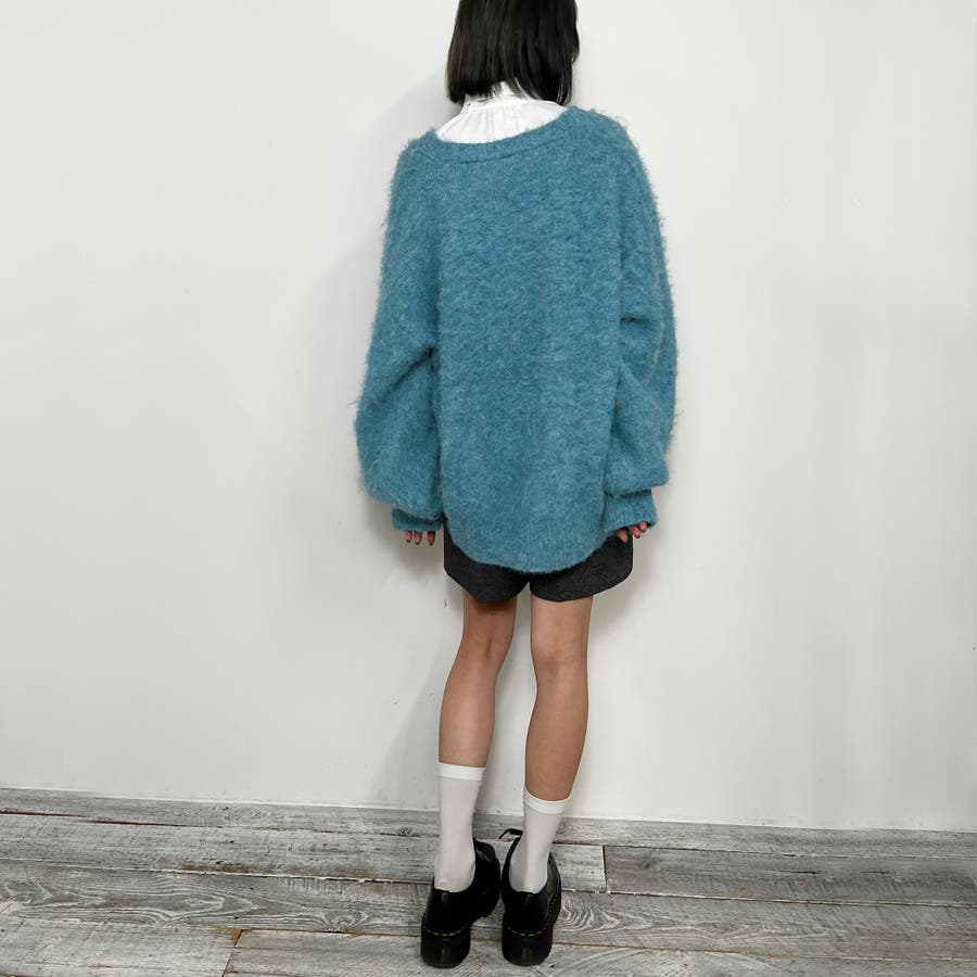 モヘア風な起毛加工がされているため、表情感があり暖かい風合い。やや長めの丈で、今季トレンドのショート丈のボトムも相性抜群。