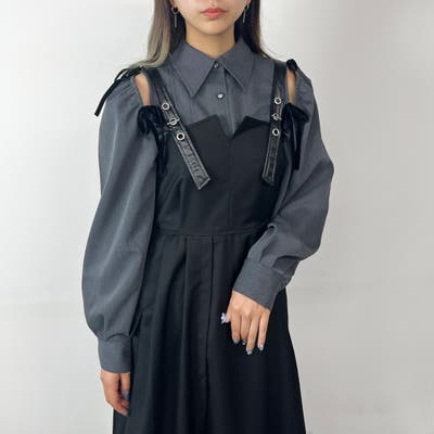 スリット部分にはベロアリボンが付いており、結び具合でお好みの明き具合やシルエットに◎