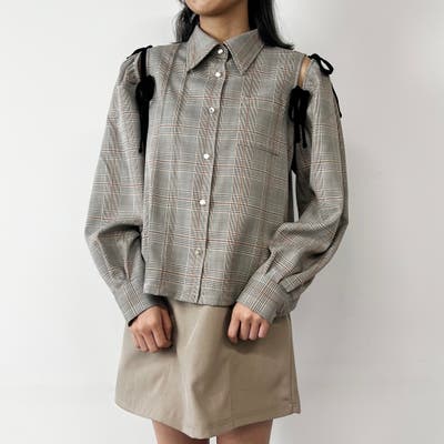 ピンタックやショルダースリットでデザイン性たっぷりですが、色はクラシカルなグレー、オフ、チェックで秋冬物のボトムスと相性抜群!