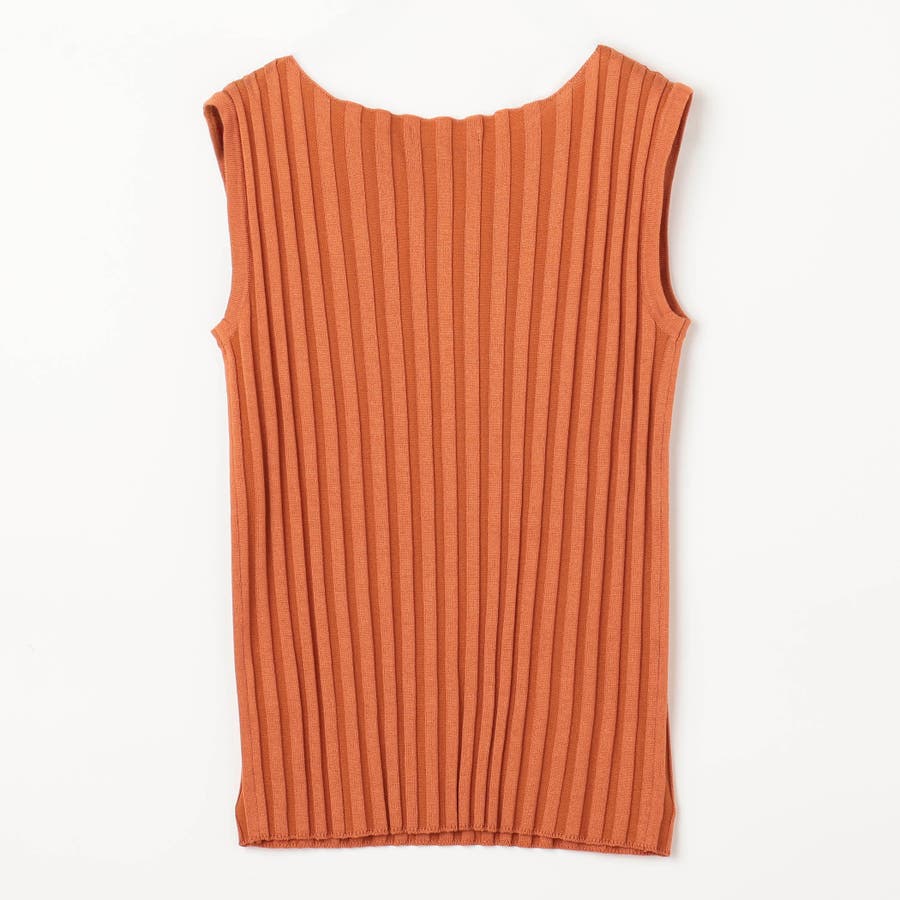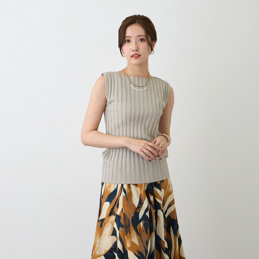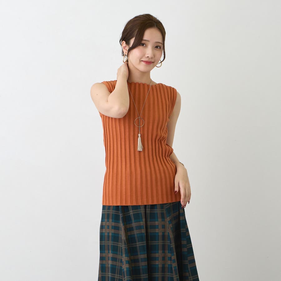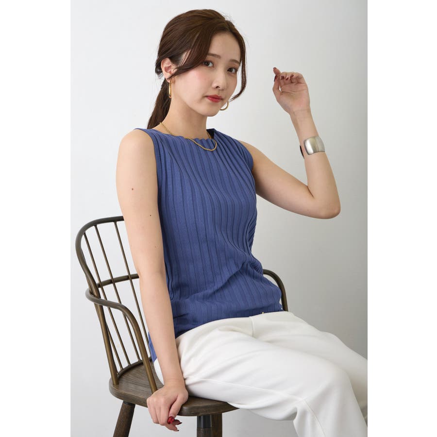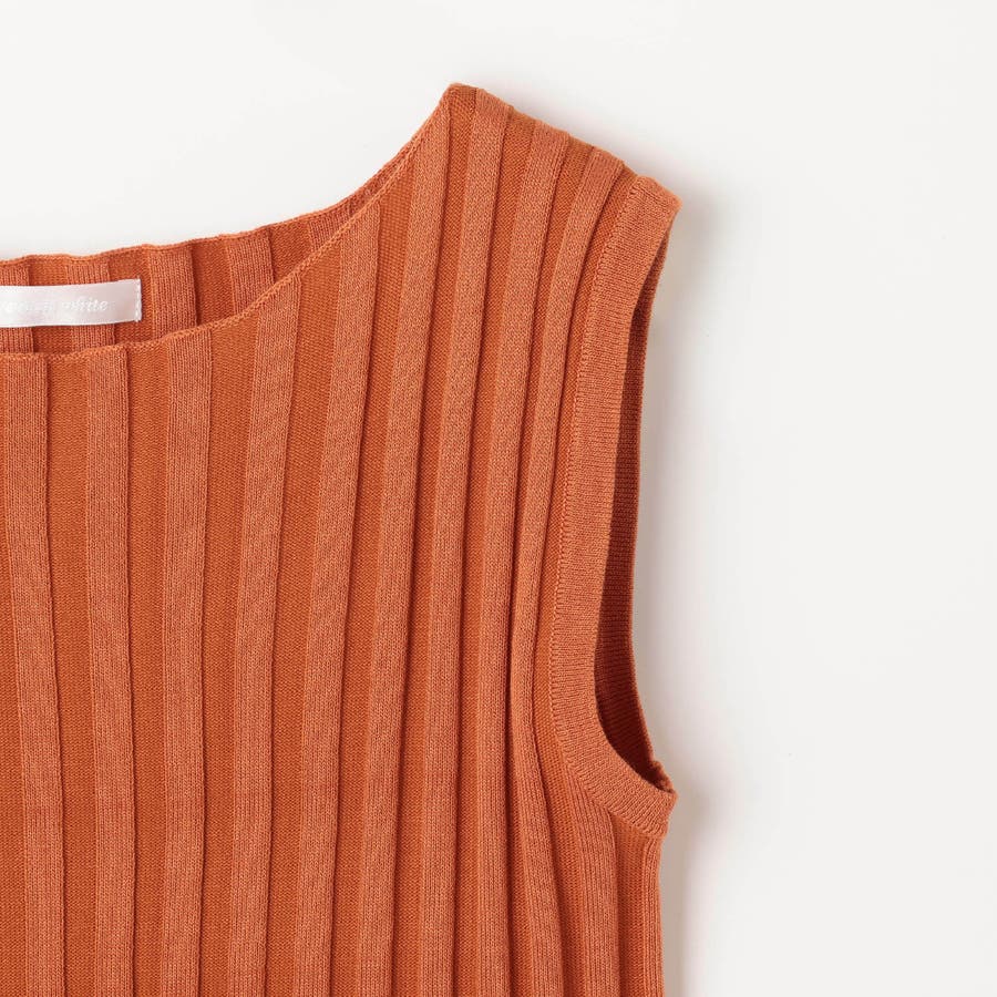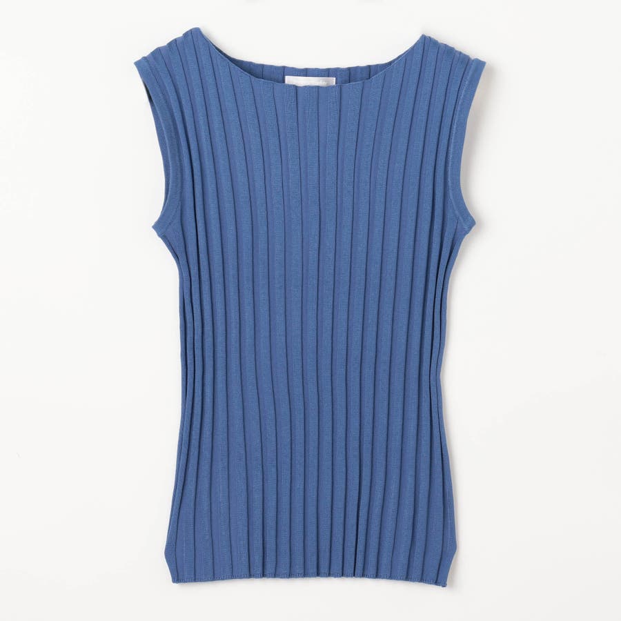 ソフトタッチのワイドリブが、ストレスフリーに着れる、リブニットノースリーブ。