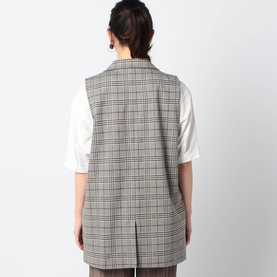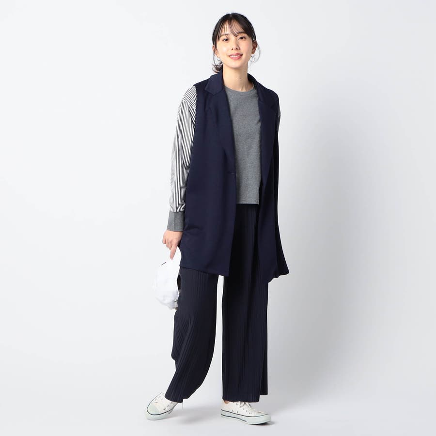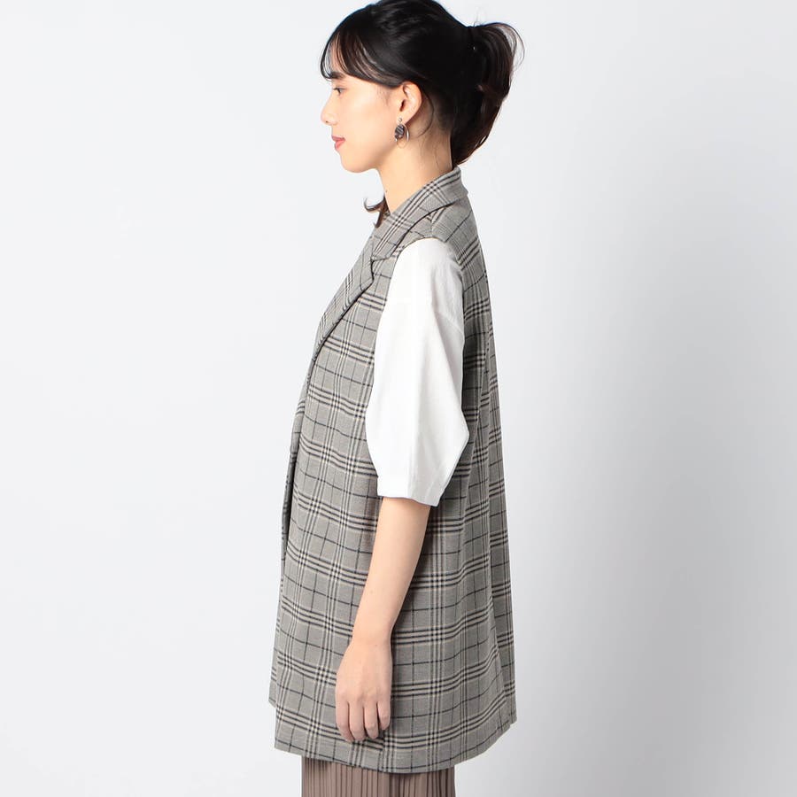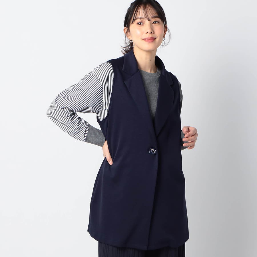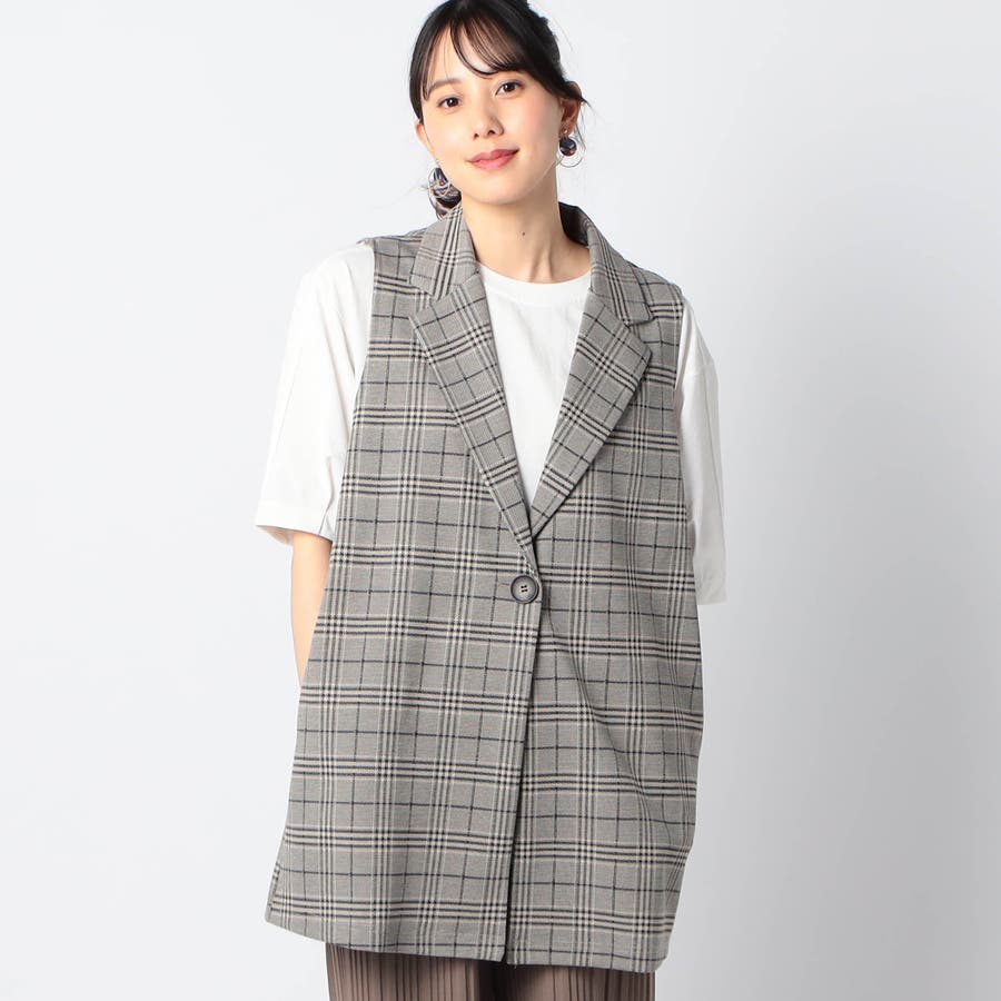 テーラー型の大人っぽいロングジレで、カジュアルMIXスタイルのアイテムとしておすすめです。