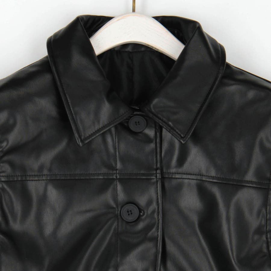 柔らかめの生地感と大きなボタンが、ハードな印象になりすぎず女の子らしく着て頂けます。