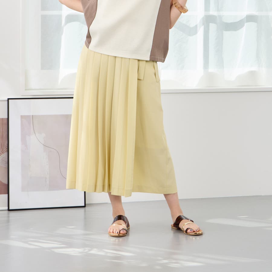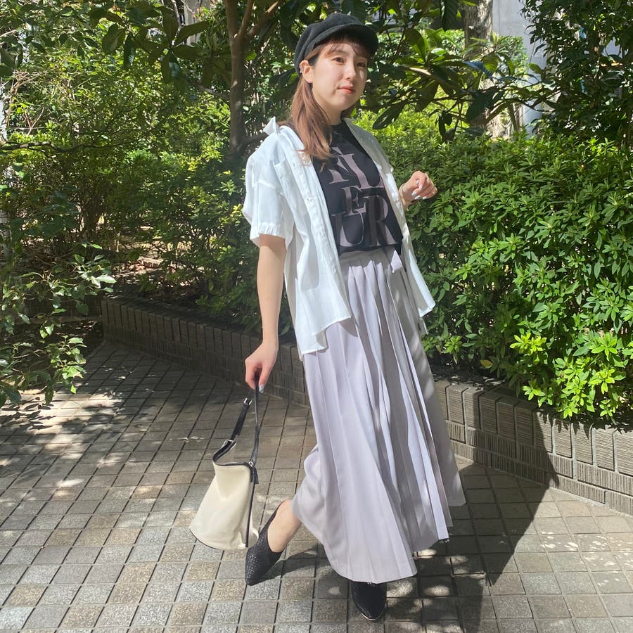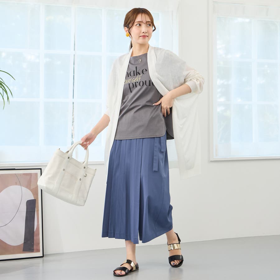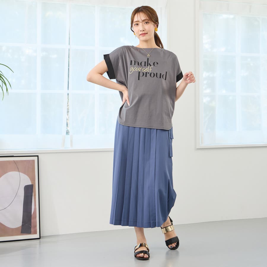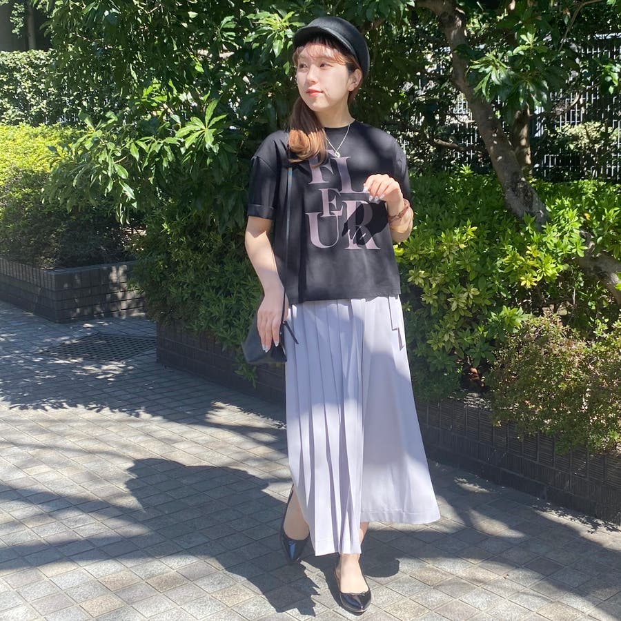 シンプルなトップスとの合わせも、プリーツデザインがアクセントります。