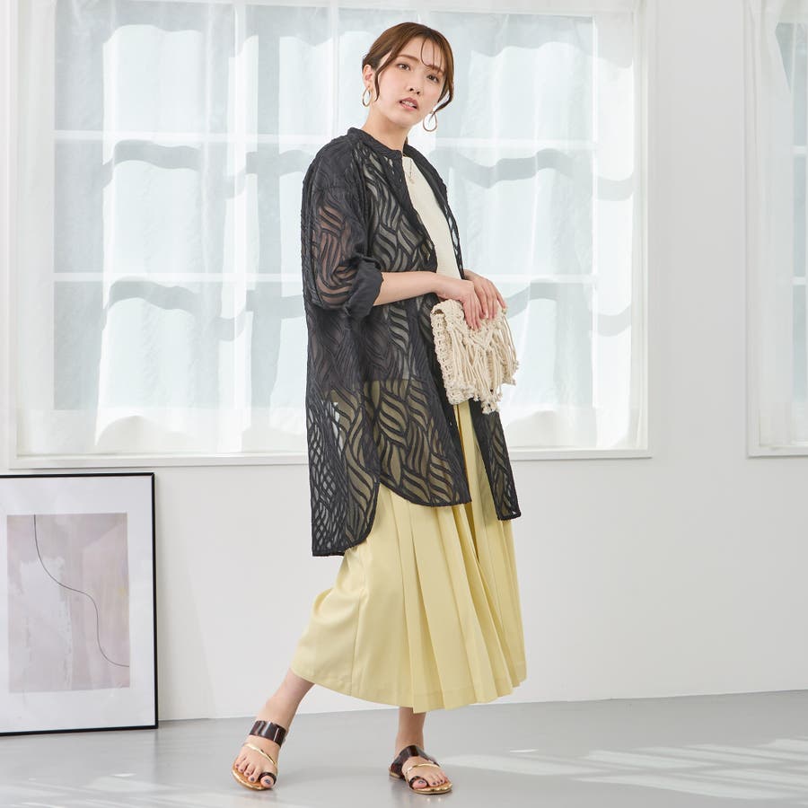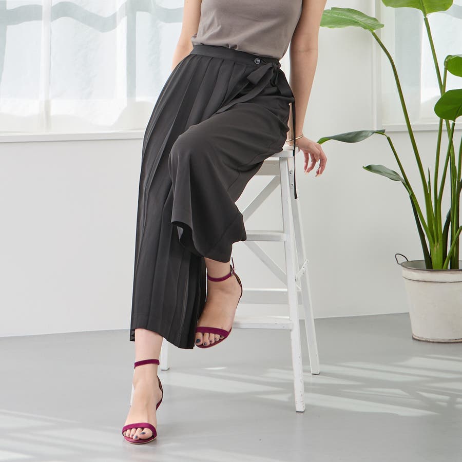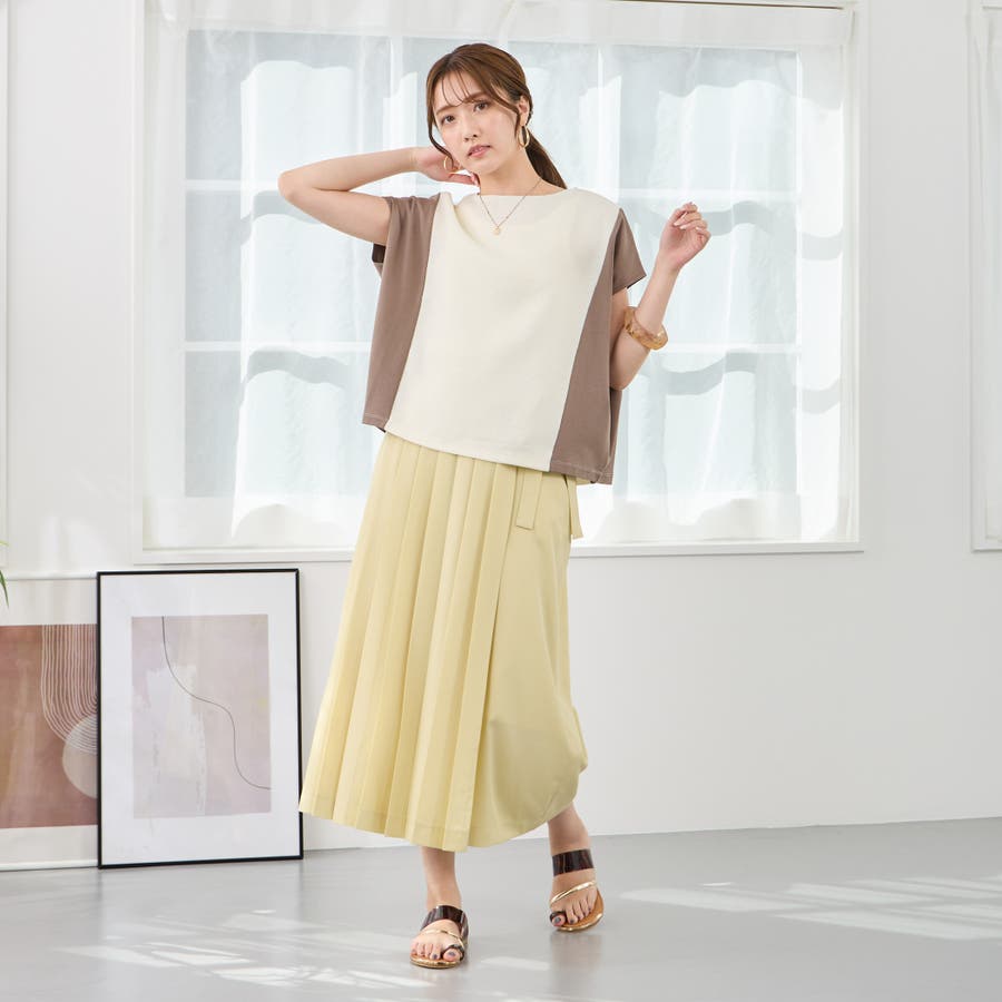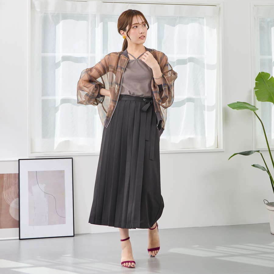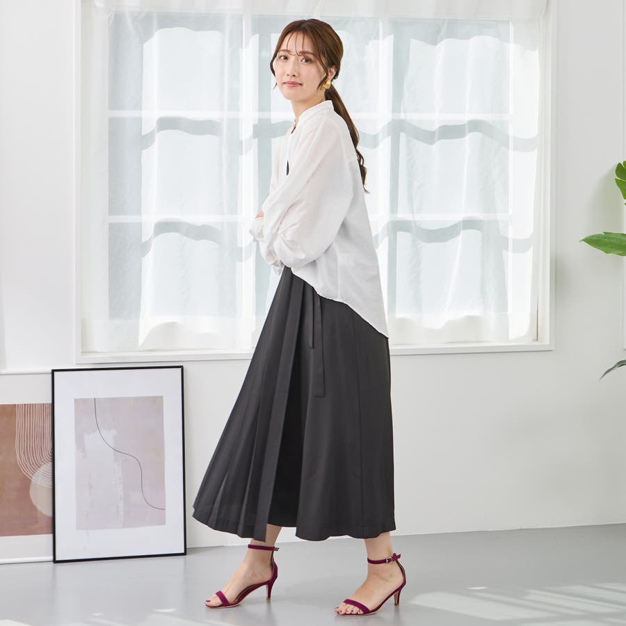 シンプルなトップスとの合わせも、プリーツデザインがアクセントります。