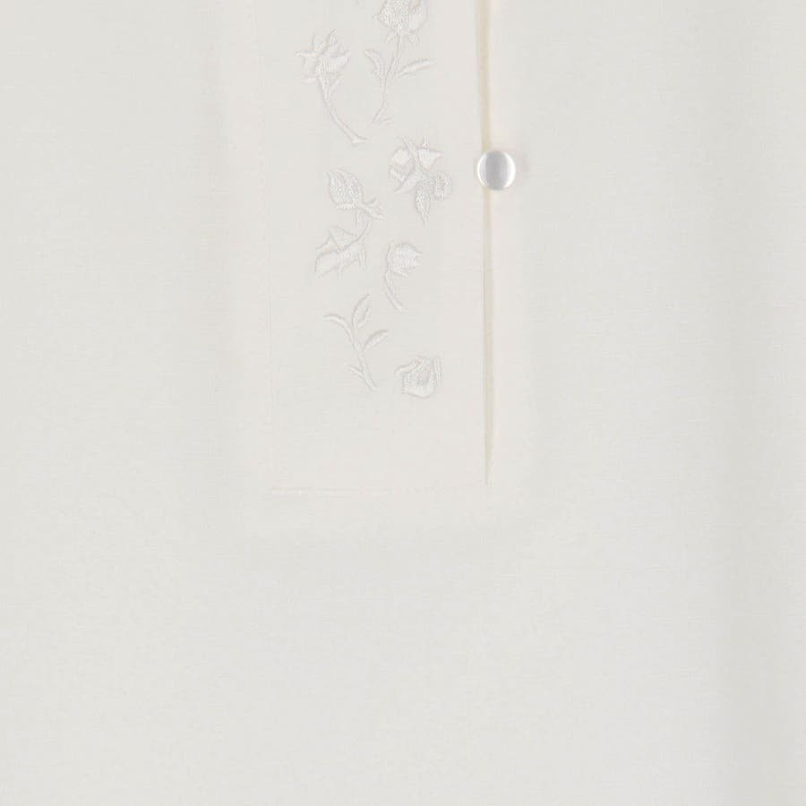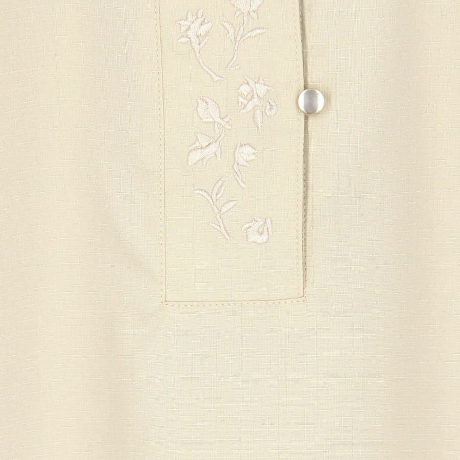 釦は首元の2箇所のみで着脱し、被りで着用するデザインになっています。
