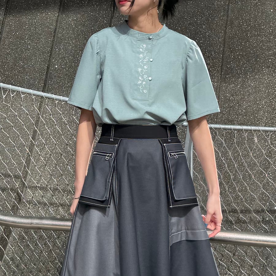 前立て部分の花柄刺繍をあえて身生地と同じ色にすることで、様々なアイテムに合わせやすいようにこだわりました。