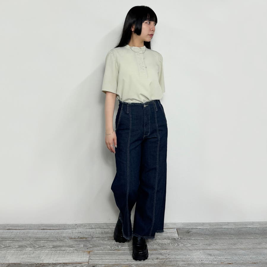 定番的なサイズ感でボトムを選ばず、着回し力抜群な1枚です。