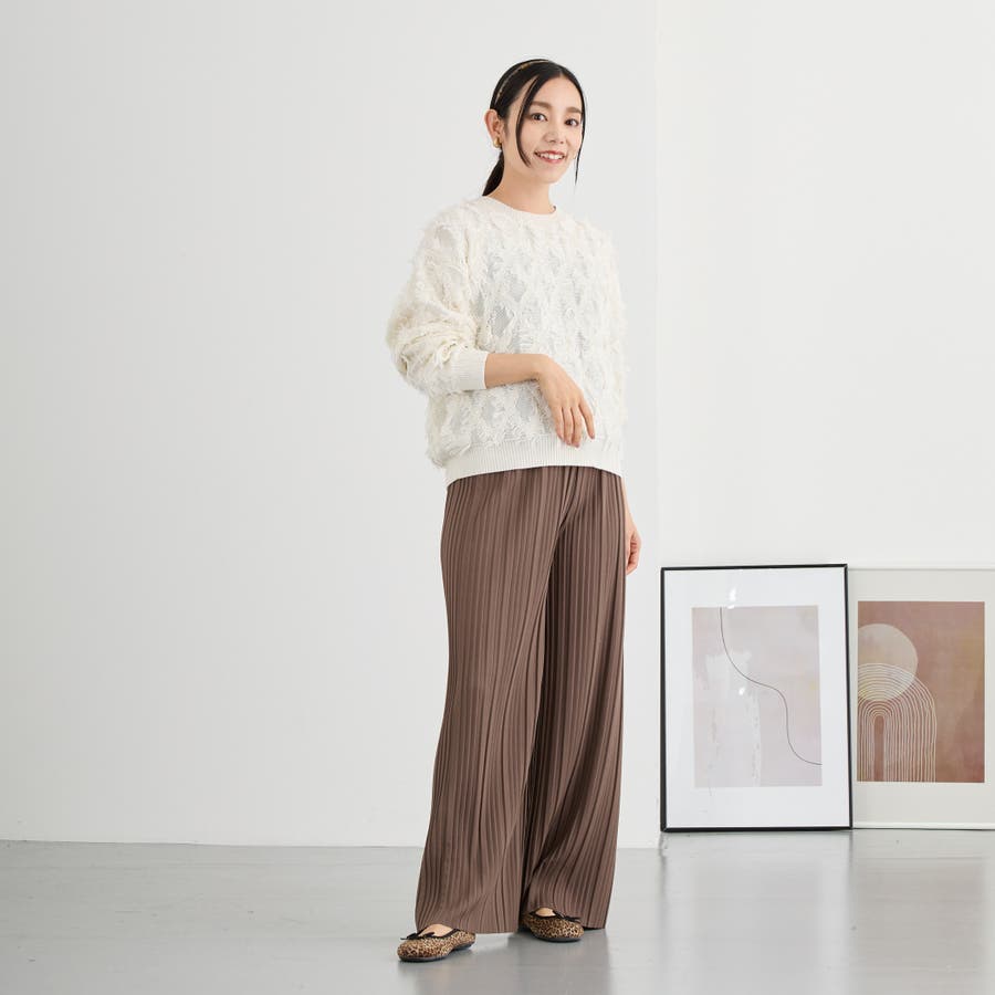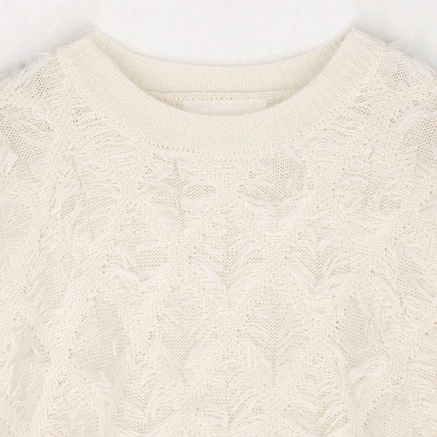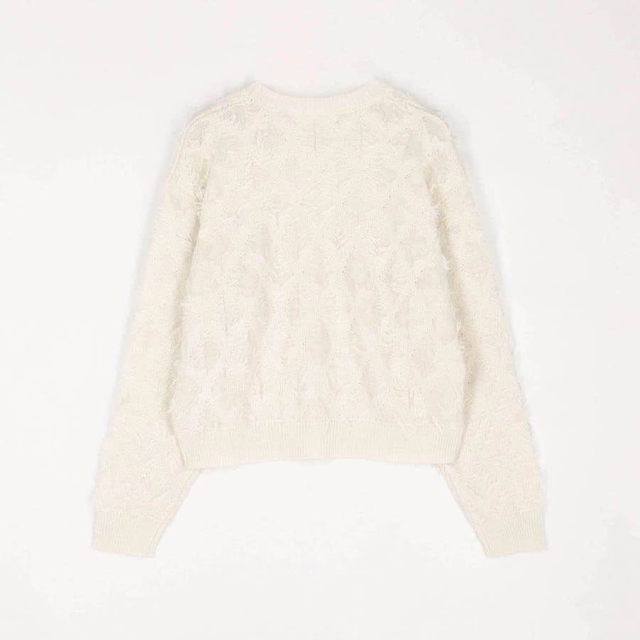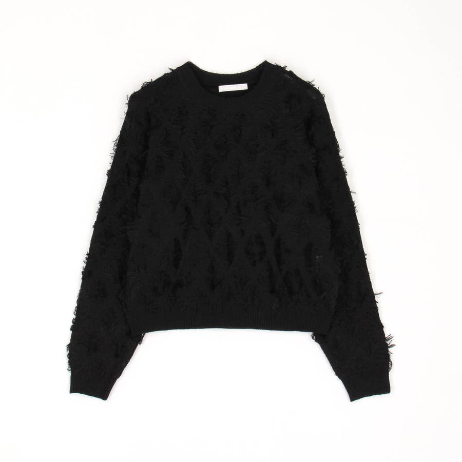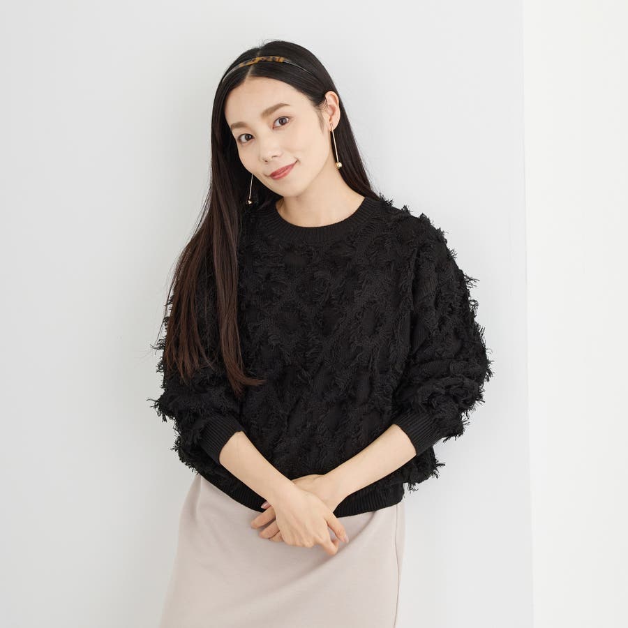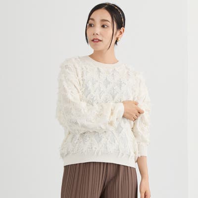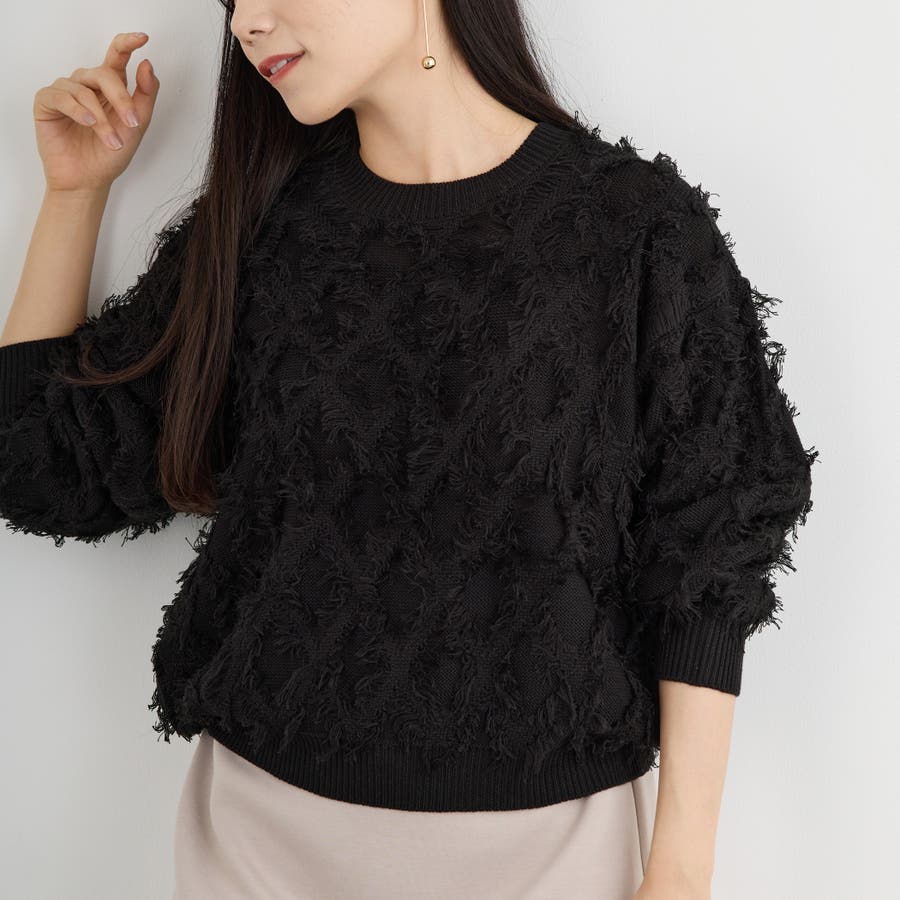表情豊かなフリンジジャカードが目を惹くニットプルオーバー。
