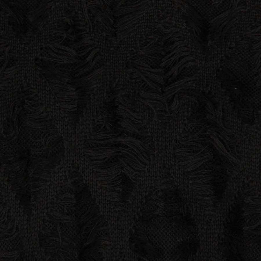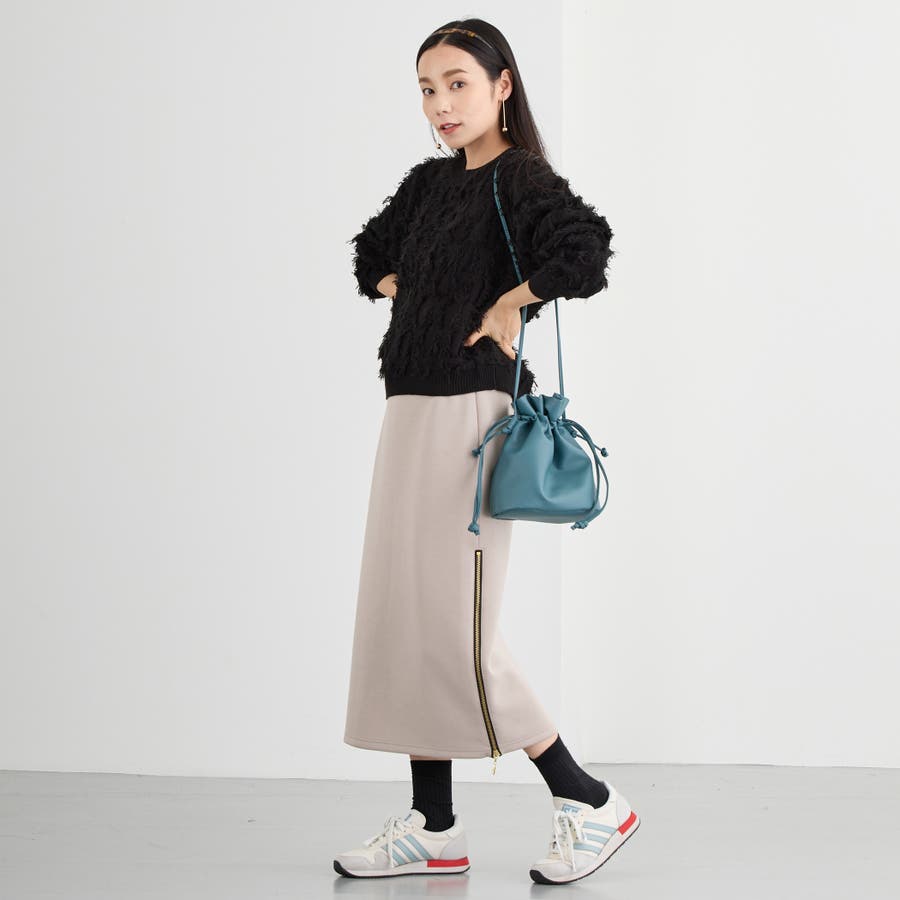 毛足の長いフリンジを全面にあしらい、シンプルなシルエットながらも印象的なスタイリングに仕上がります。