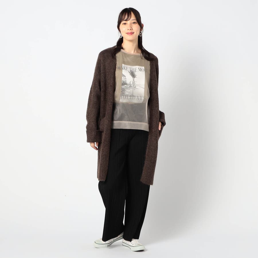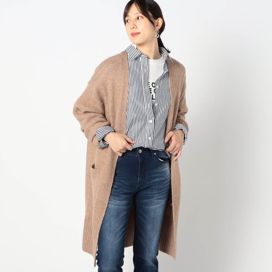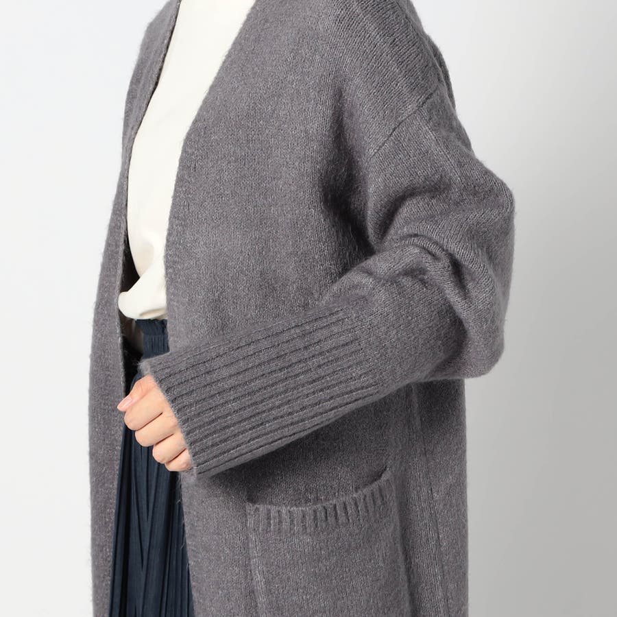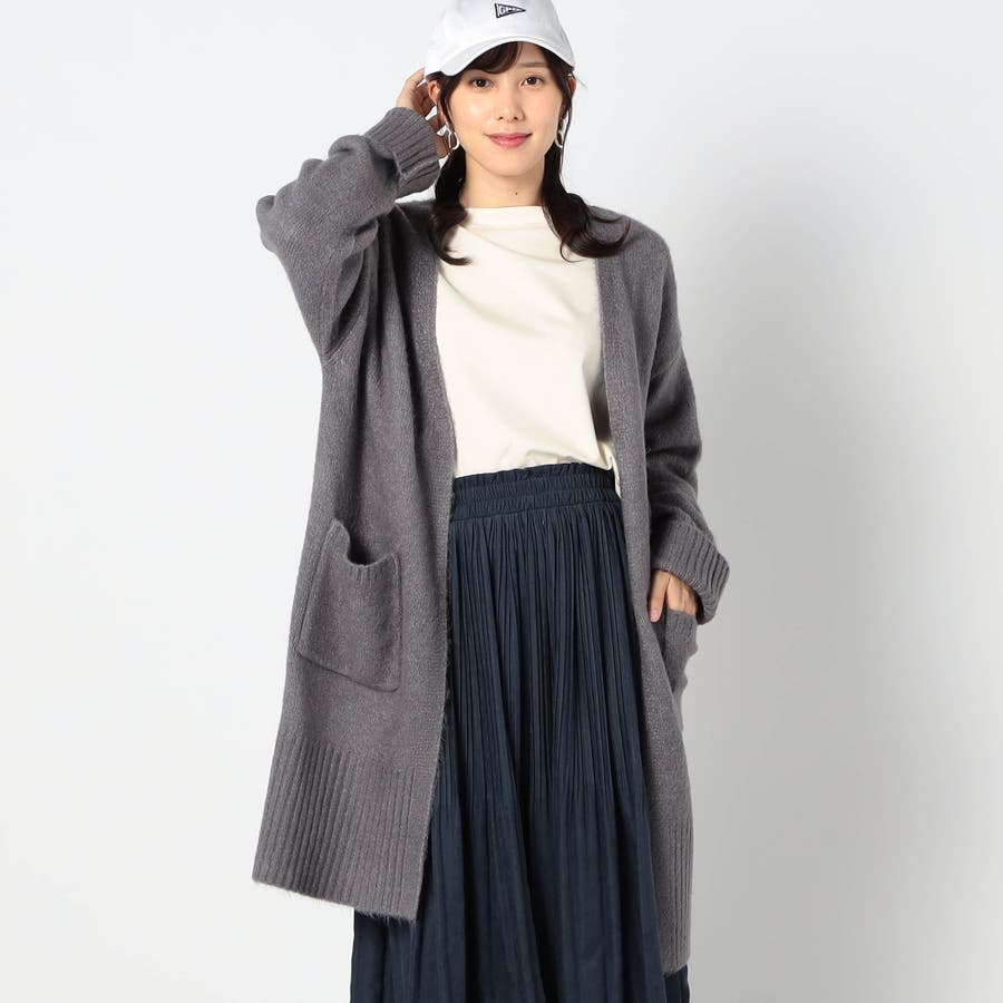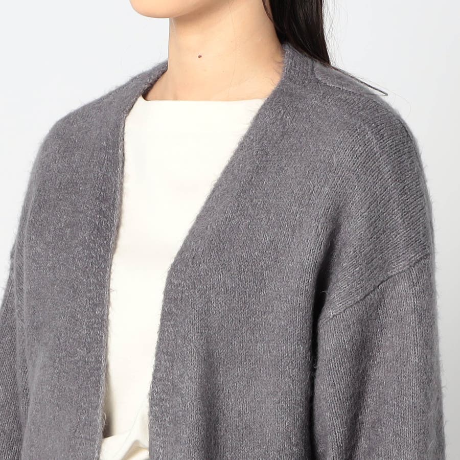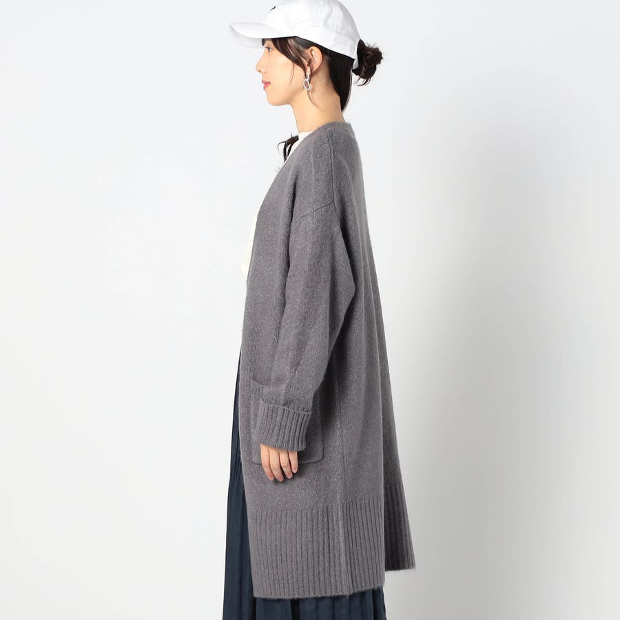 ボタンレスのスキッパータイプカーディガンで、袖と裾のワイドリブがポイントです。