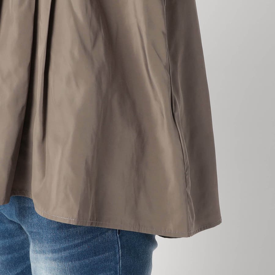 切り替えたブラウスの肩や袖口にギャザーが取ってあり、ブラウス特有のふわりとした素材感が女性らしい袖デザインを演出しています。