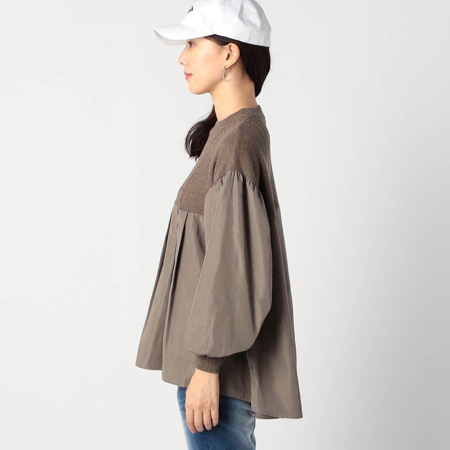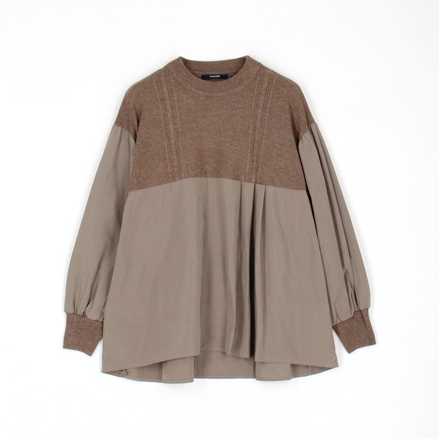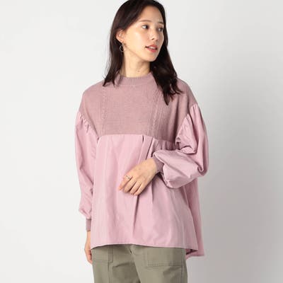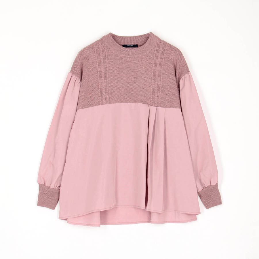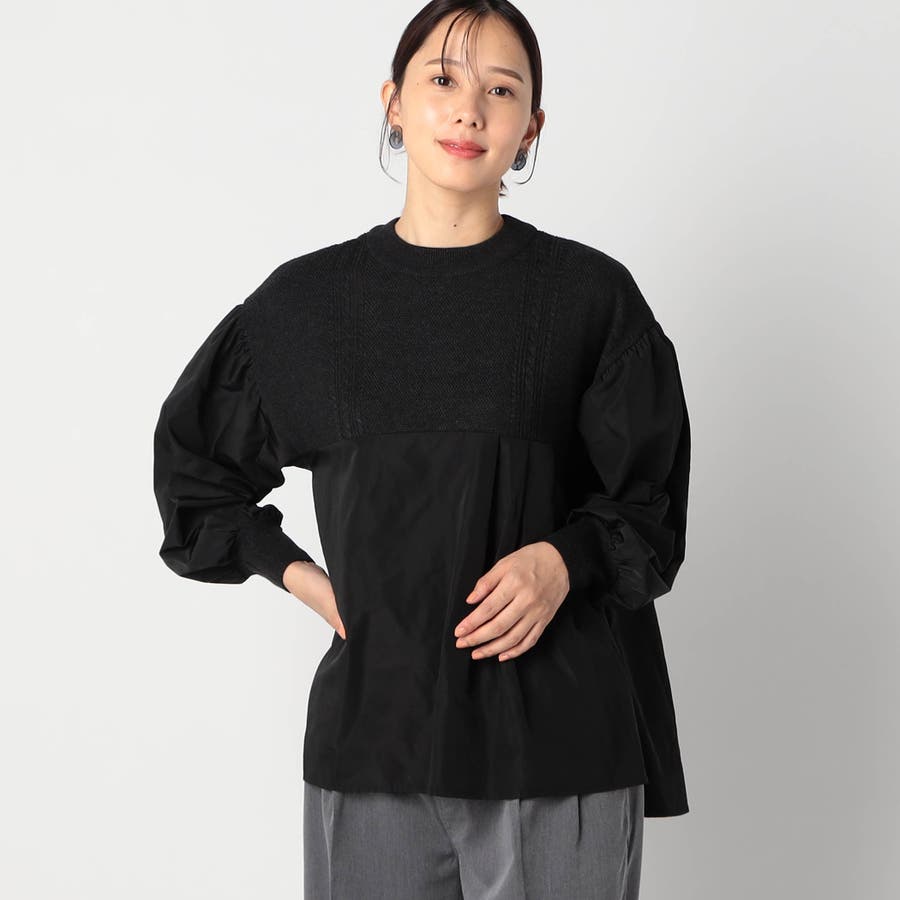 ニットとブラウスの異素材を組み合わせた、ドッキングプルオーバーです。