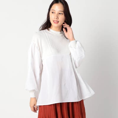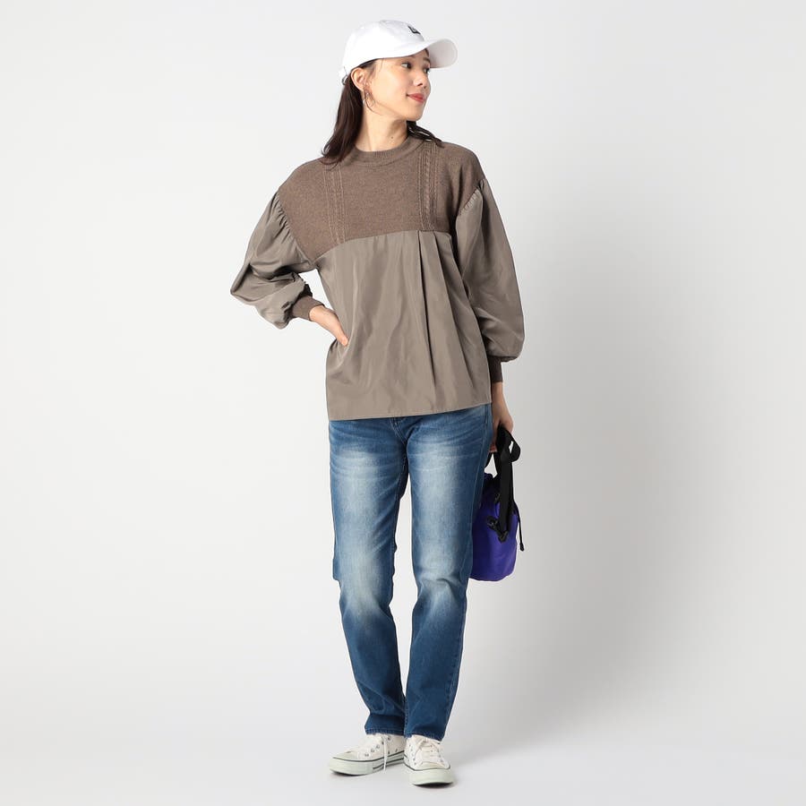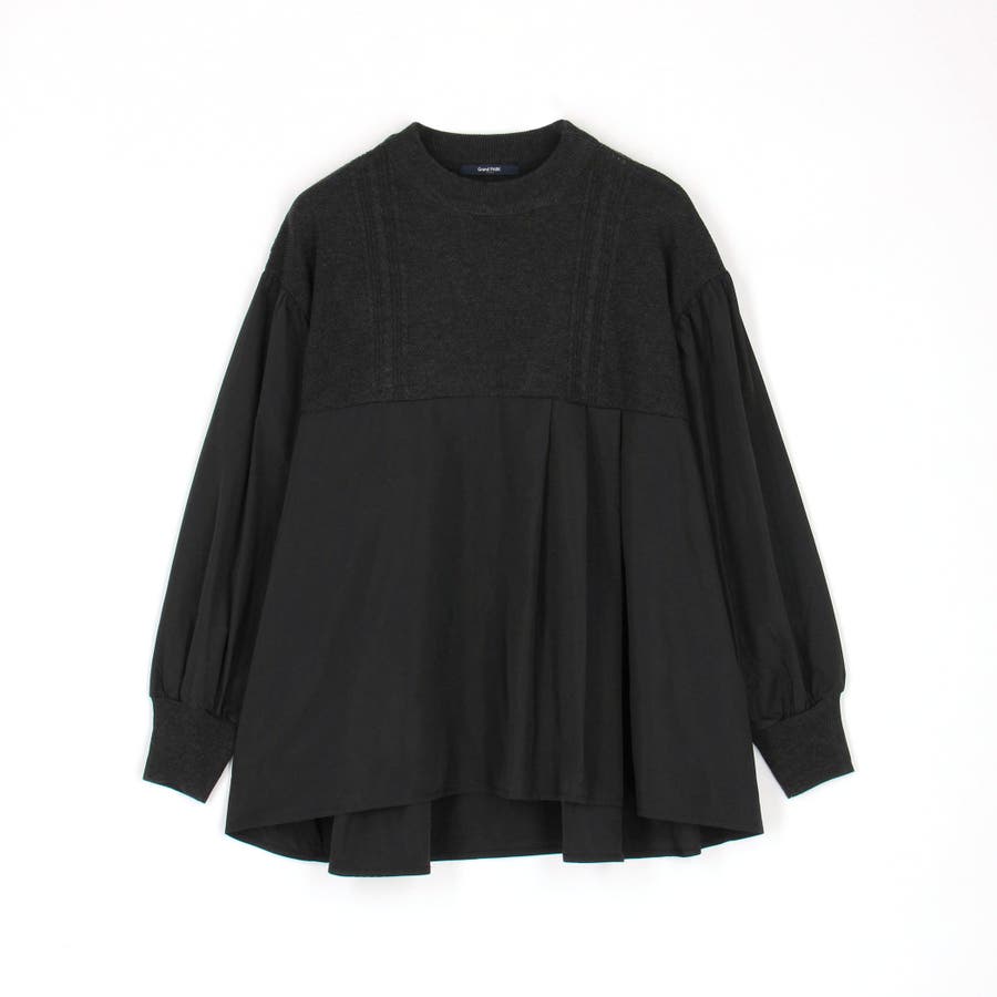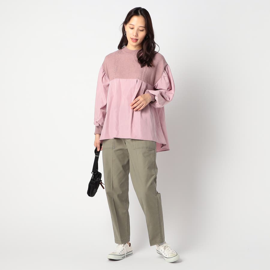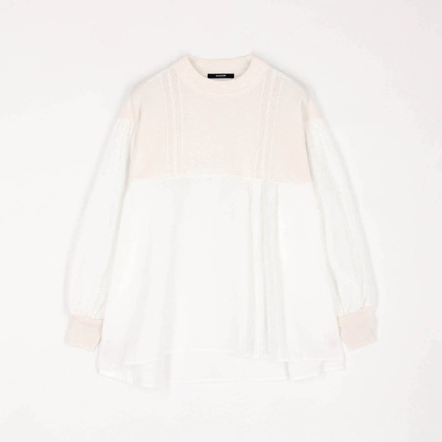 ニットとブラウスの異素材を組み合わせた、ドッキングプルオーバーです。