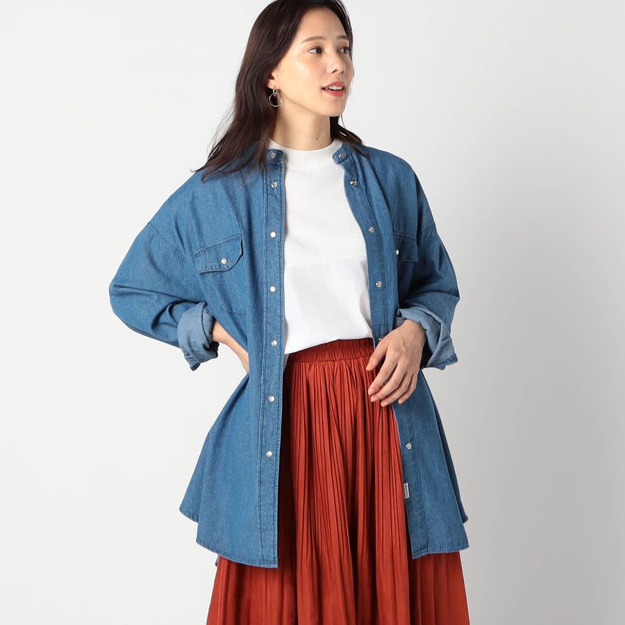 ウエスタン風 ノーカラーデニムシャツ