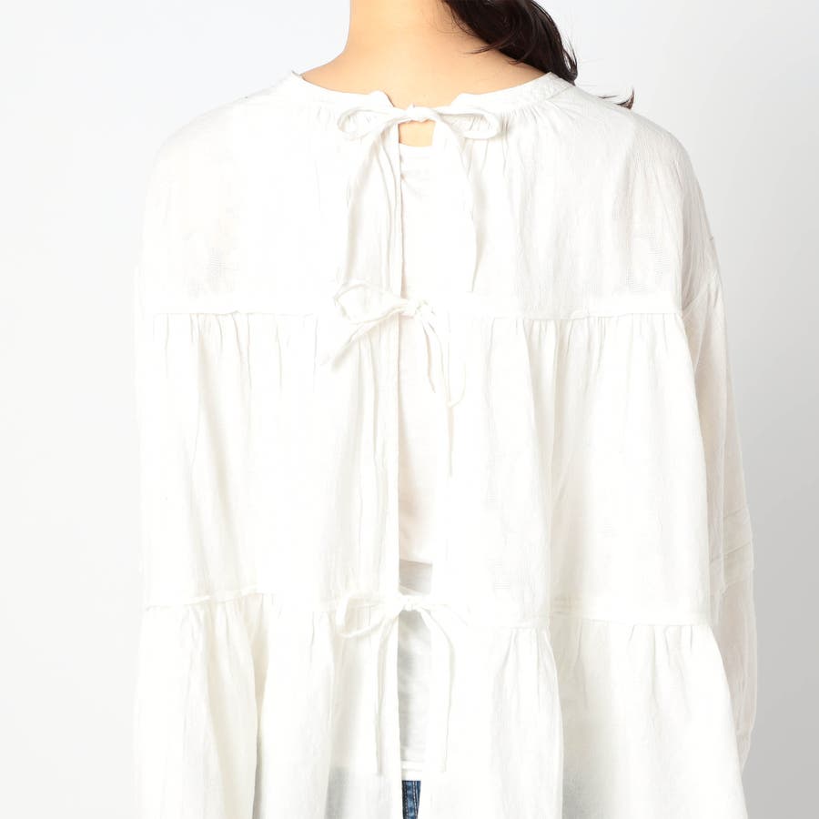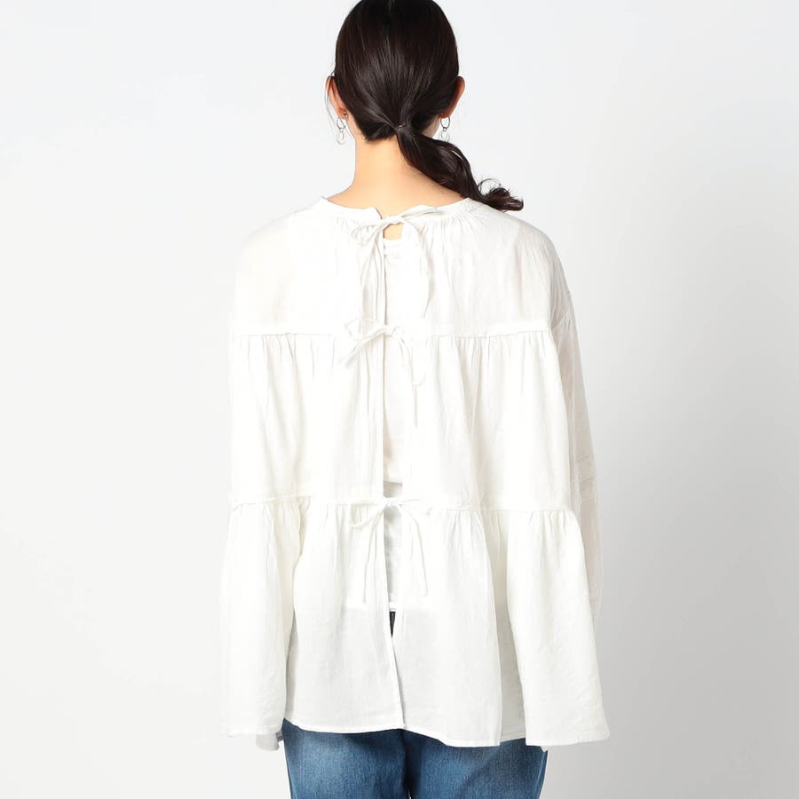 *リボンやティアードデザインが施されているので、デニムやサマーパンツなどと合わせてシンプルなコーディネートがおすすめです。