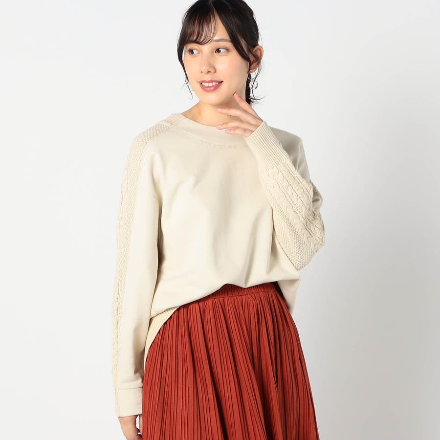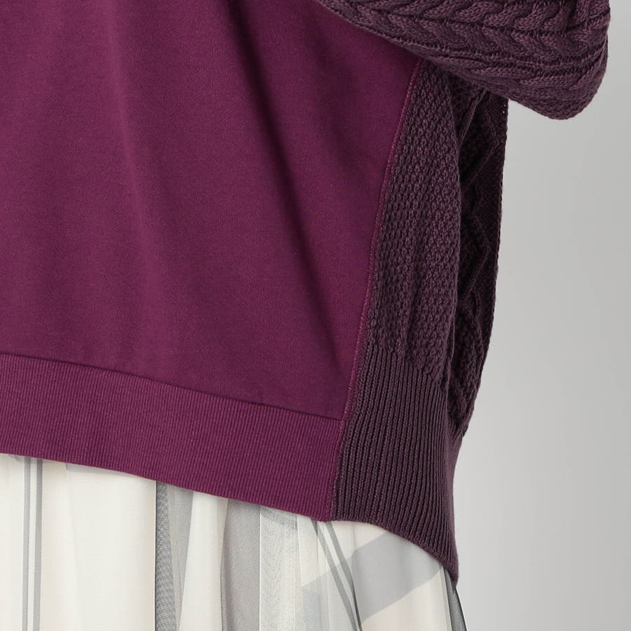 1枚でコーデが完成する、トレーナーとニットを組み合わせた、ドッキングプルオーバーです。