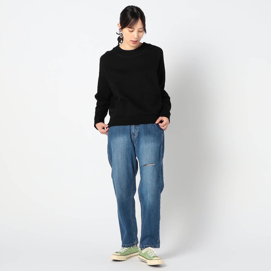*襟ぐりはリブのない、カジュアルさを抑えたボートネックに近いデザインで、首元のラインがきれいに見えます。