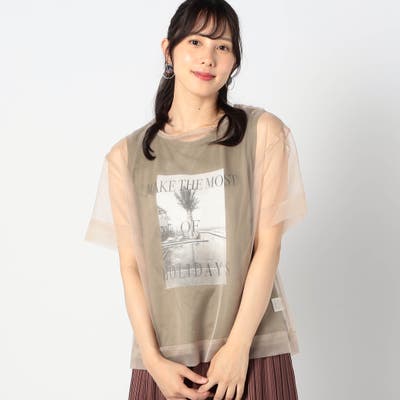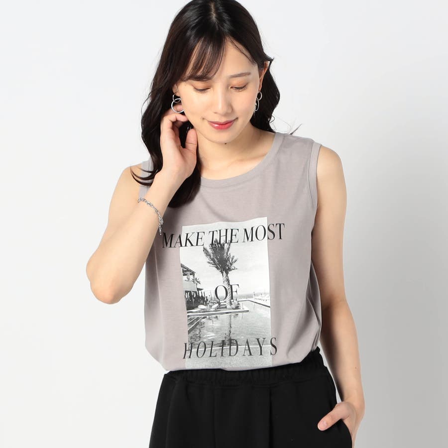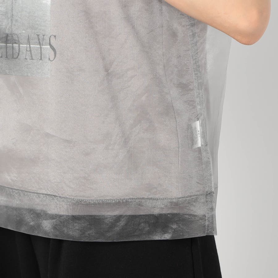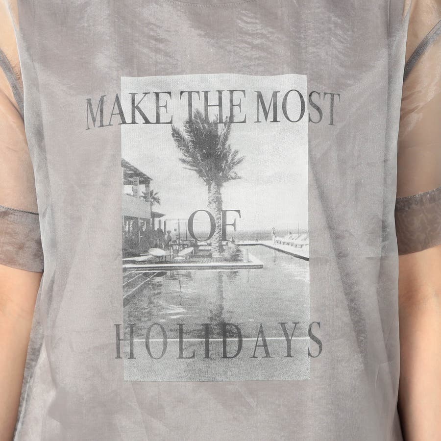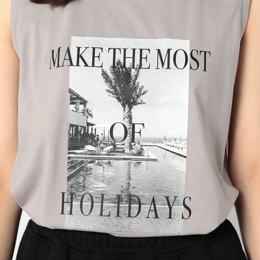 アウトをオーガンジー素材、インナーはタンクトップにフォト+ロゴをプリントしたノースリーブのお得感あるセットアイテムです。