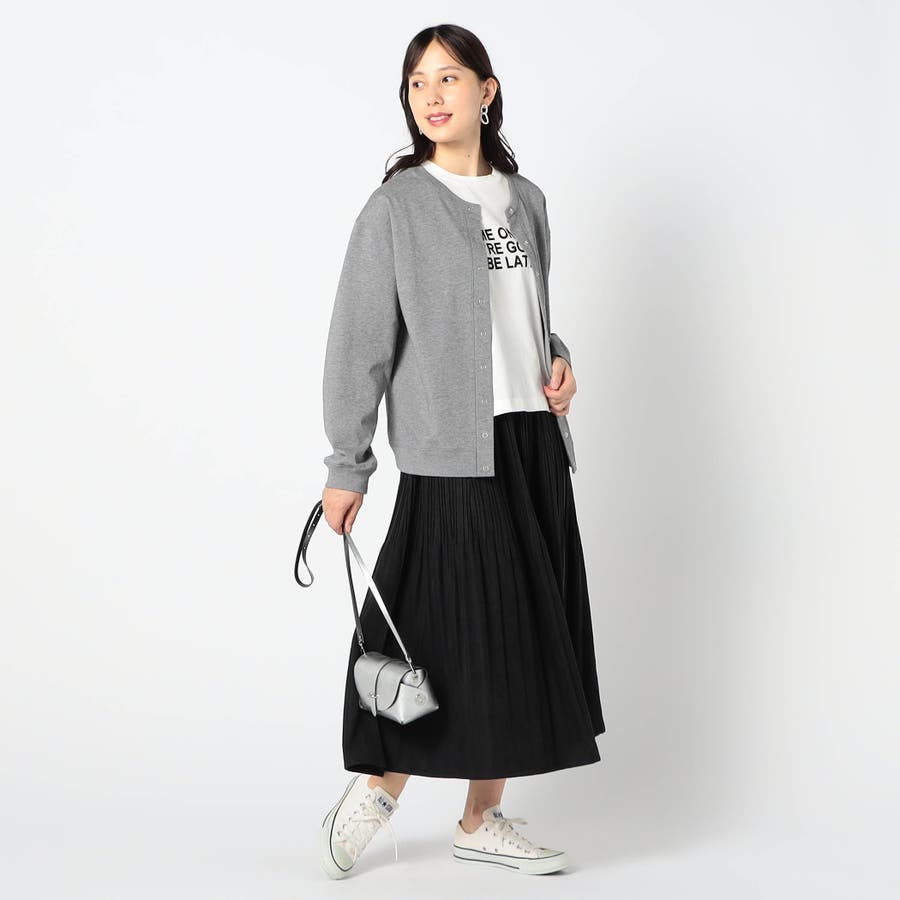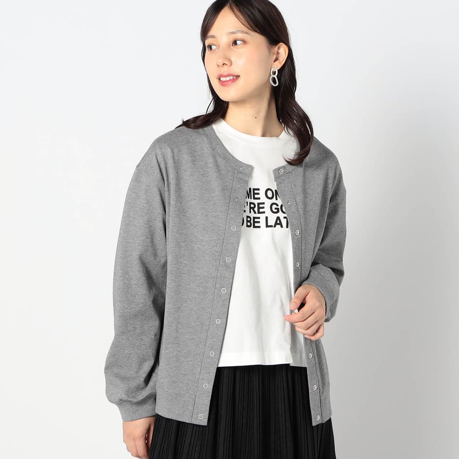 腰にかかる丈で、カーデとしてTシャツや長袖の上にも羽織りやすく、プルオーバーとして着用しても大きすぎず程よいサイズ感です。