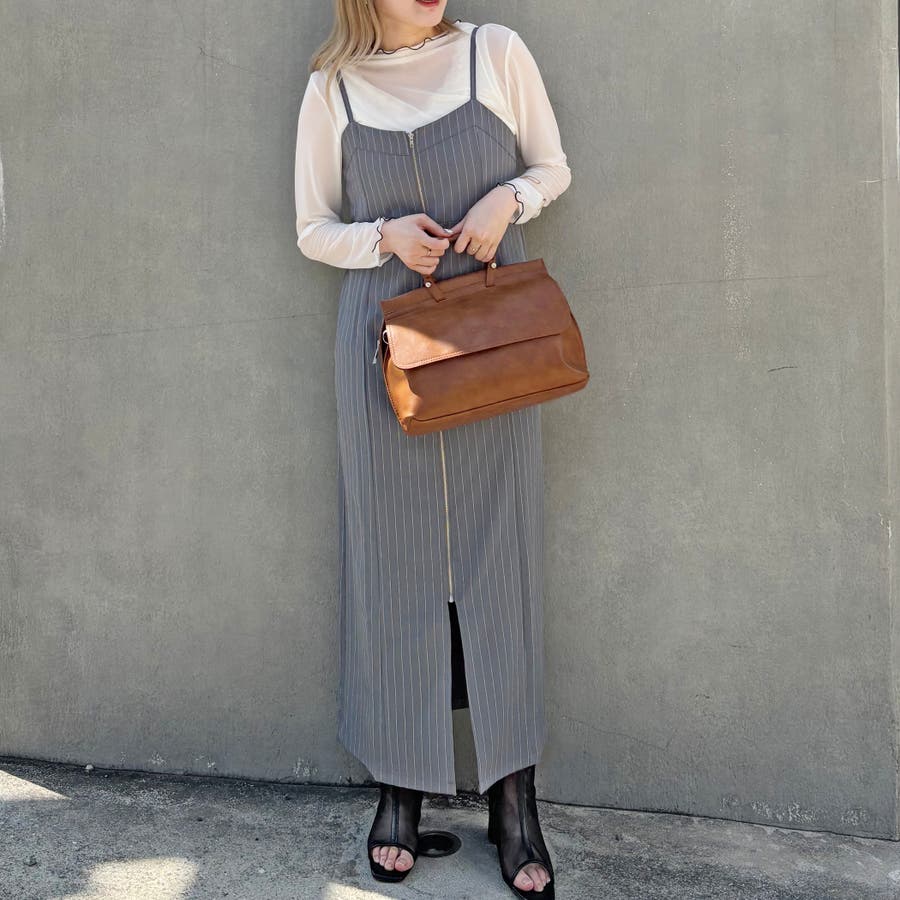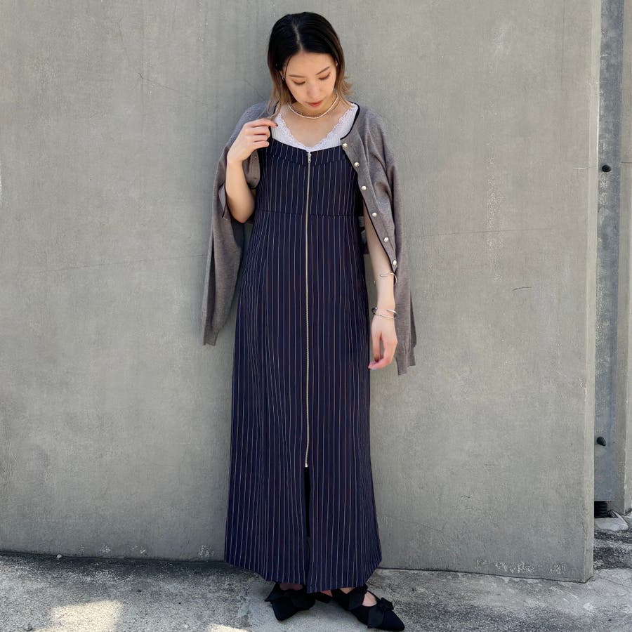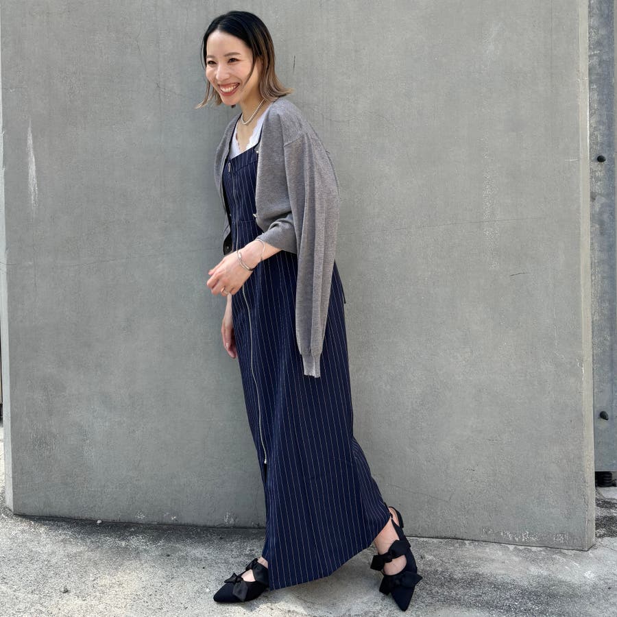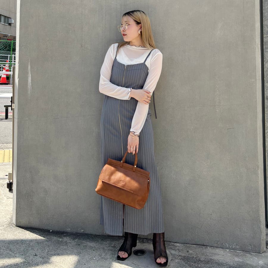 薄手のシアーインナーと合わせてジャンパースカート風に着用したり、