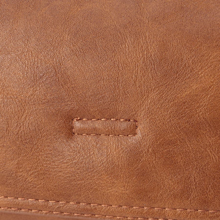 ヴィンテージライクな表面感のフェイクレザーを使用しており、秋らしく深みのあるスタイリングを楽しめます。