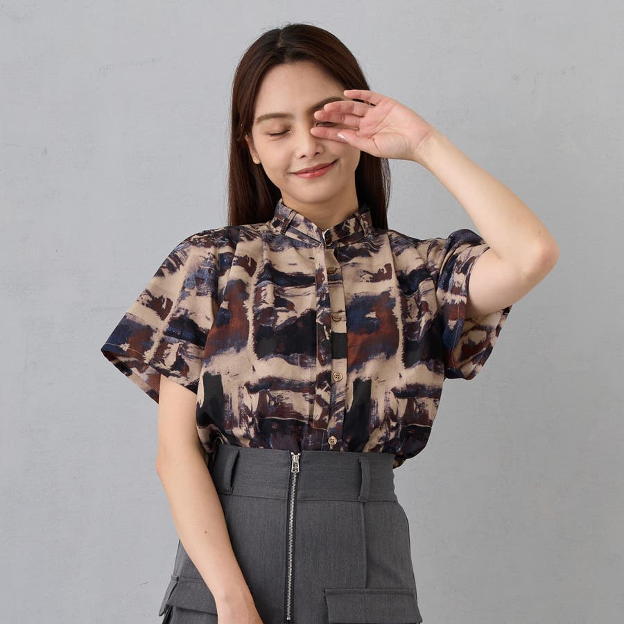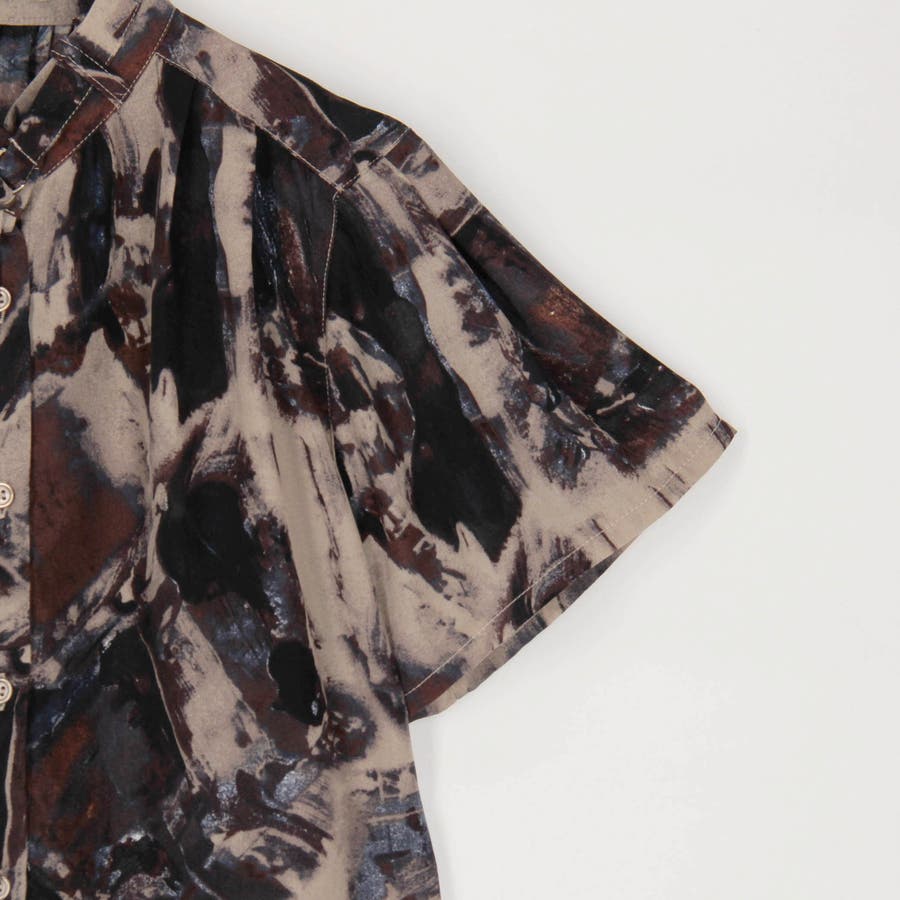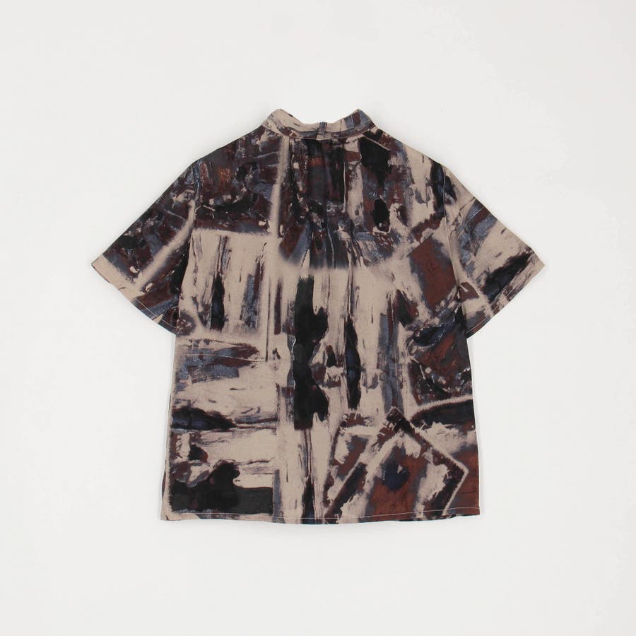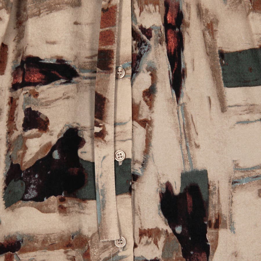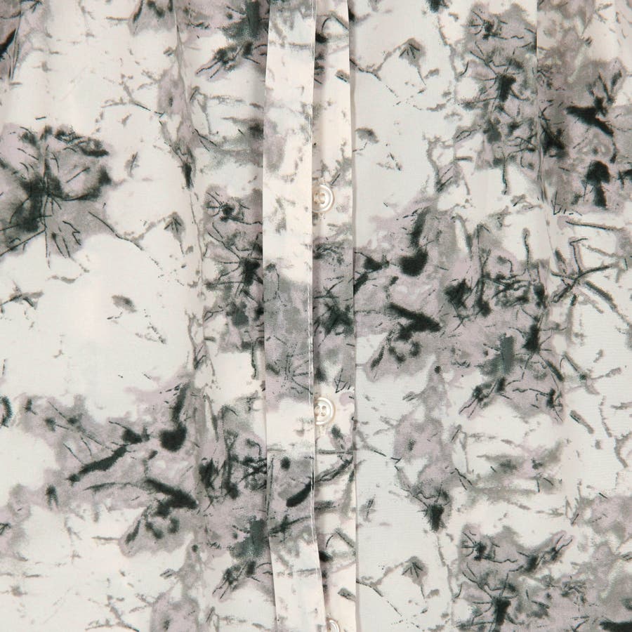 衿ベルト 水彩柄ブラウス