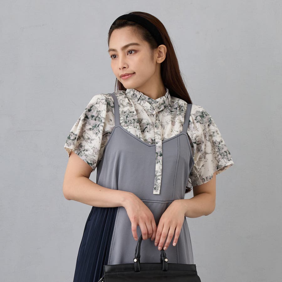 衿のベルトは取り外し可能で、バンドカラーの柄ブラウスとしてもご着用頂けます。