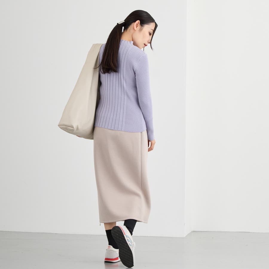 タイトすぎない程よいフィット感はニットだけどすっきりした印象になります。