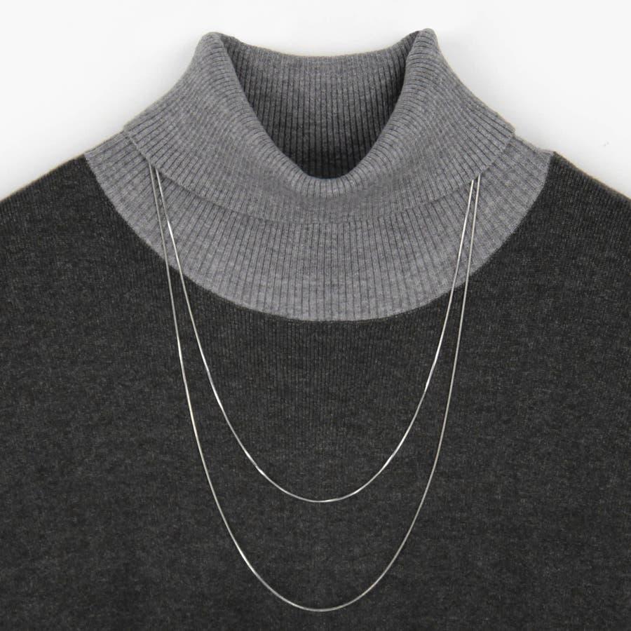 シックな2連のネックレス付きが嬉しいポイント。ゆったりとしたデザインなので体型カバーにも◎