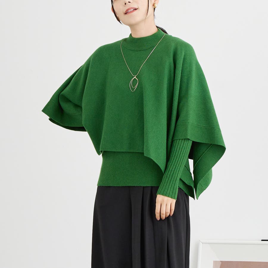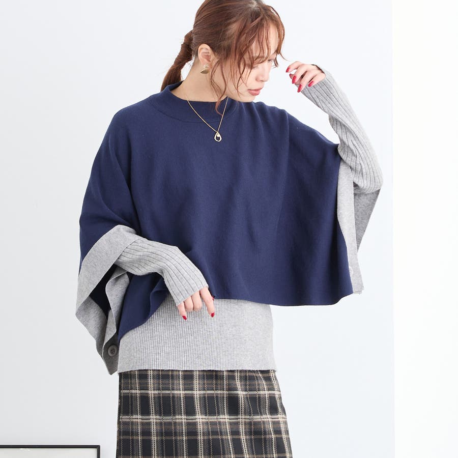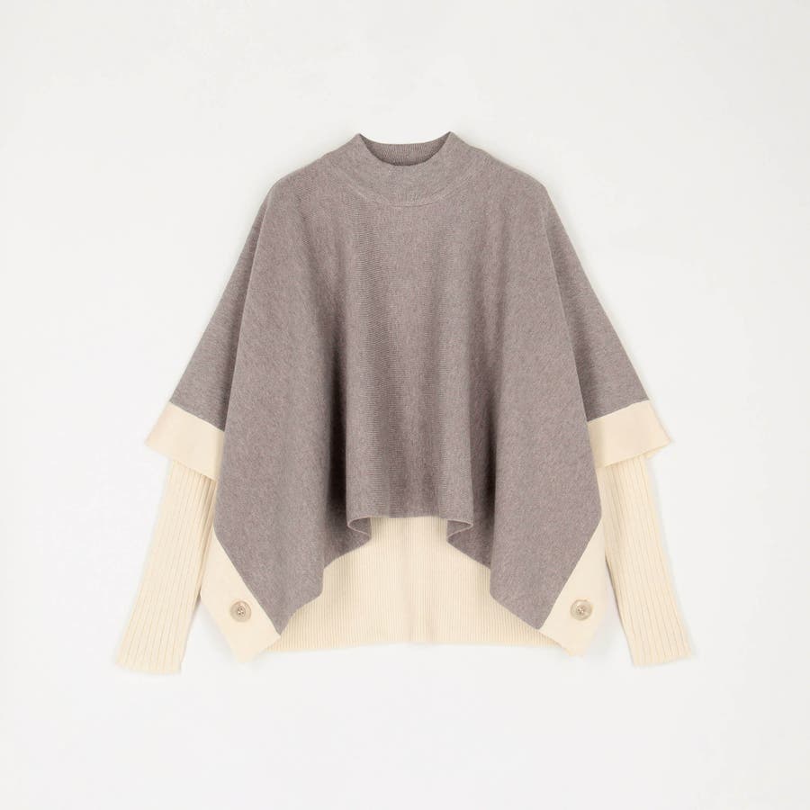 アンサンブルニット/スヌードポンチョ×クルーネックプルオーバー
