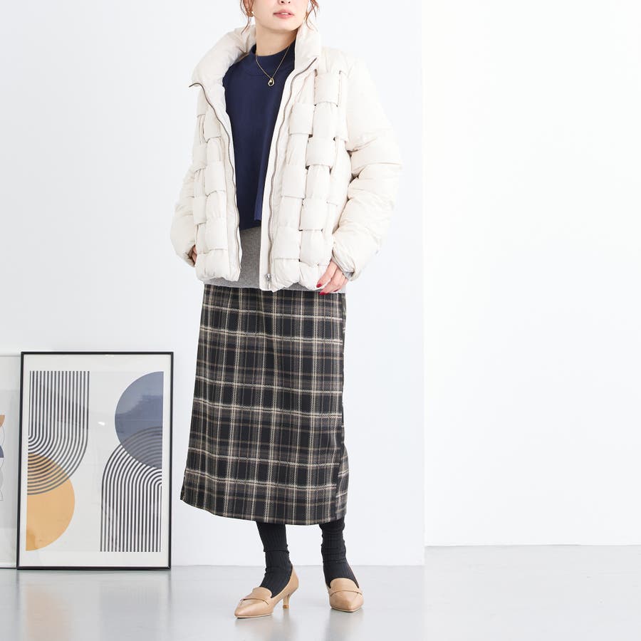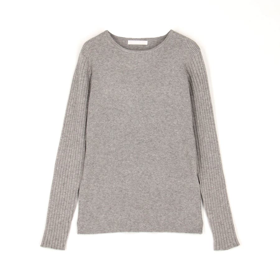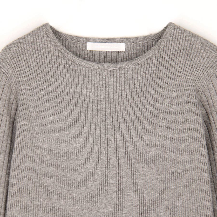 インナーはシンプルなクループルオーバー。シンプルながらも、身頃と袖のリブ巾を変えてこなれ感をプラス。