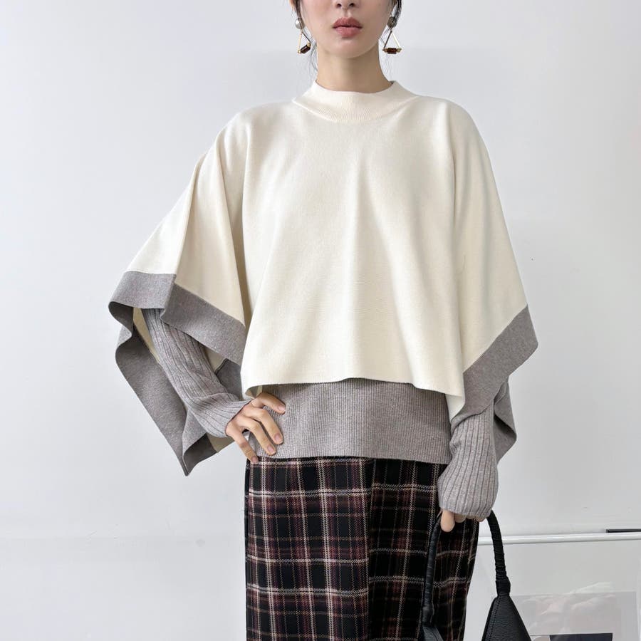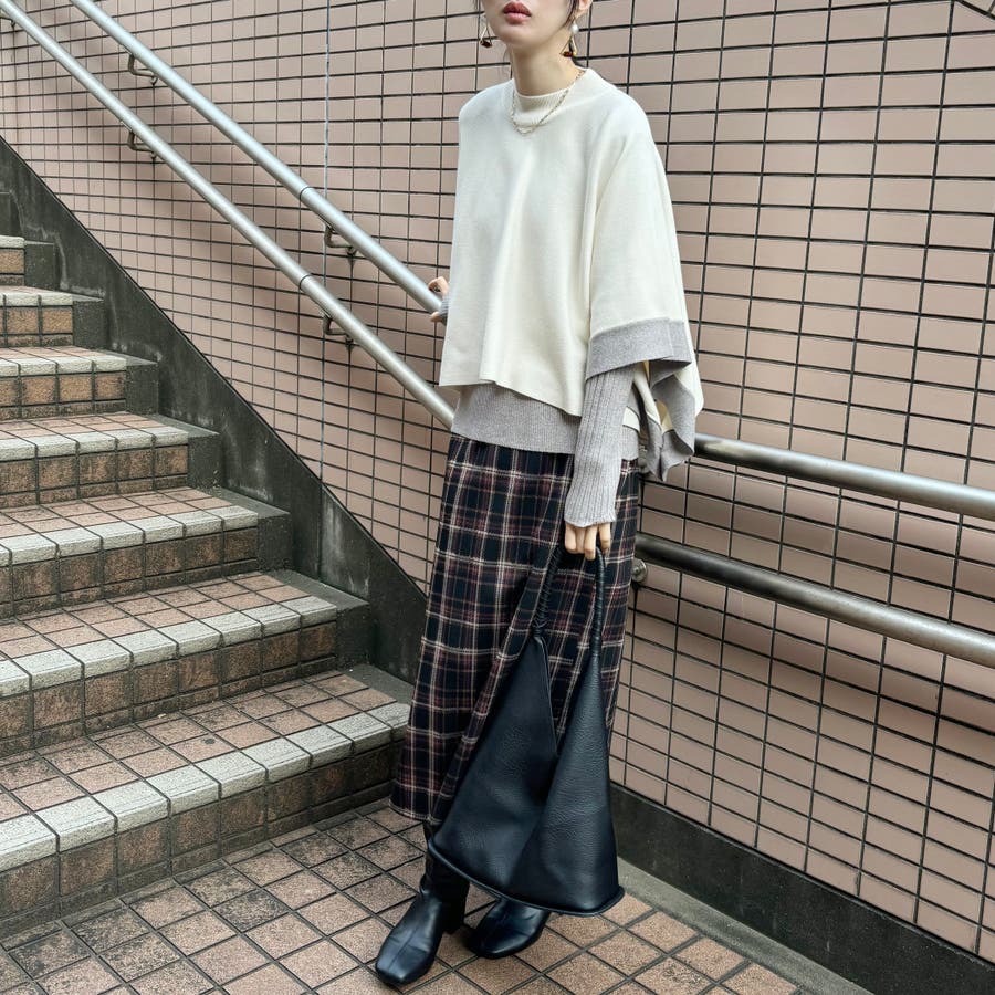 昨年大人気だったニットスヌードポンチョ×クルーリブニットのアンサンブルが今年も登場。