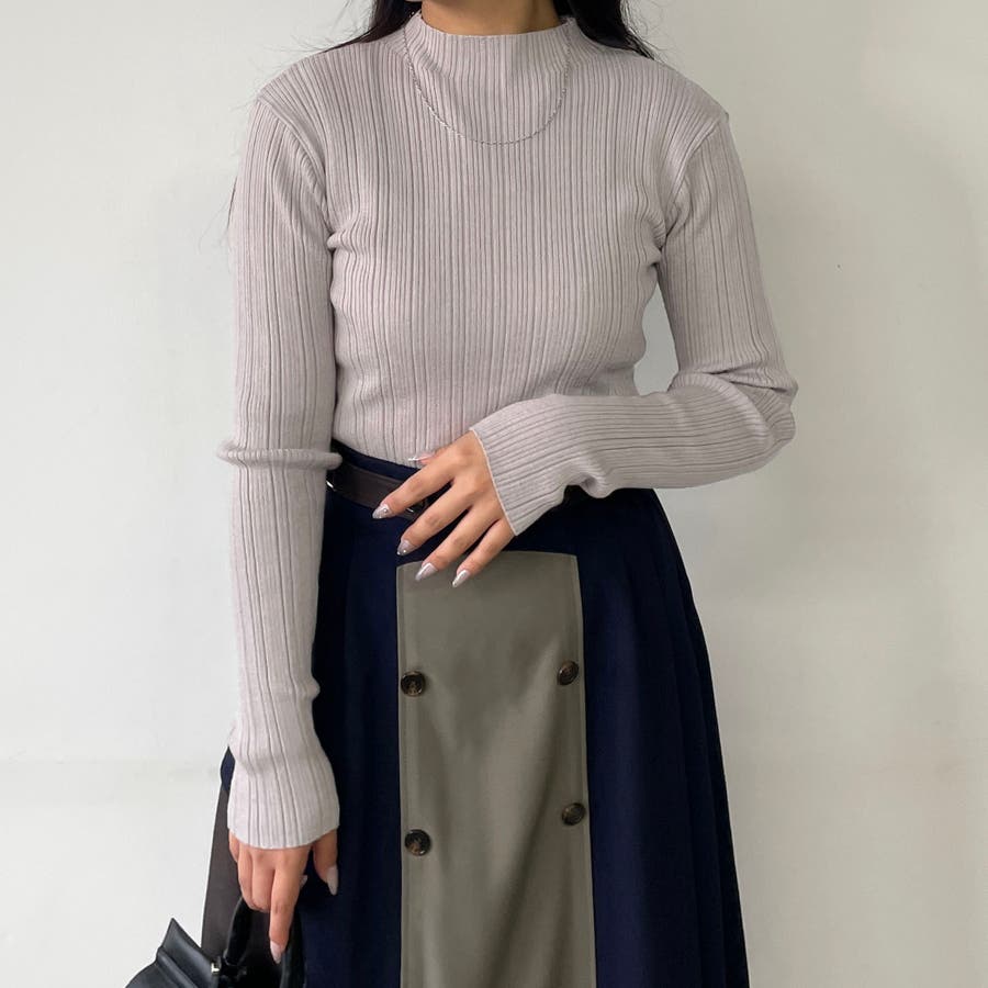 リブに仕立て程よく身体のラインが出て女性らしい印象を与えてくれます。