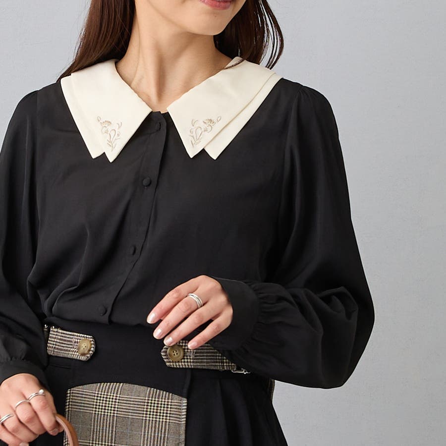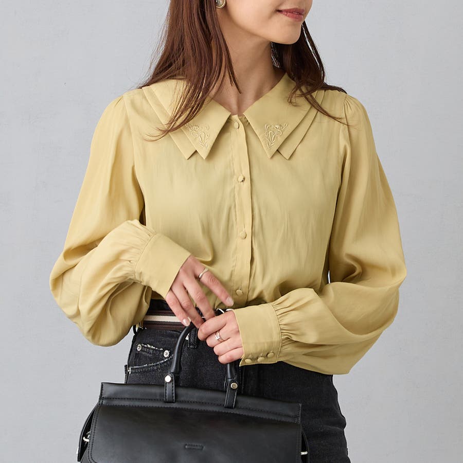 二重に重なった衿がさりげなく存在感を放ち、1枚でもメインでしっかりとお使い頂けるアイテムです。