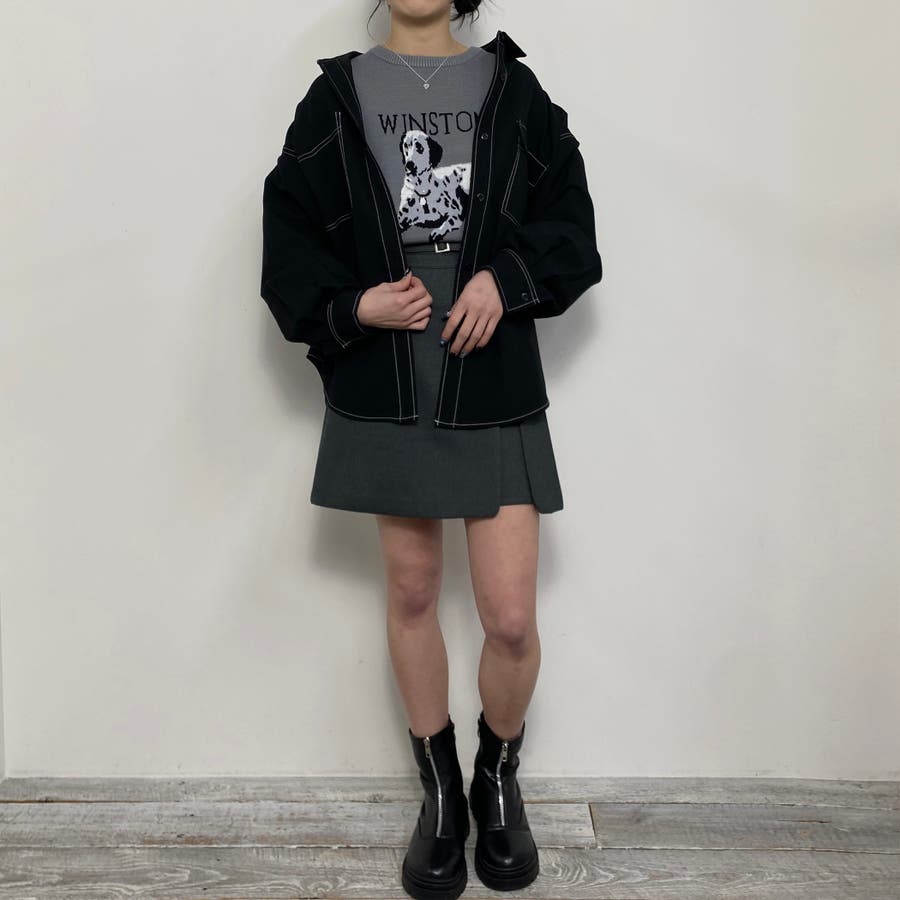 肌寒い時には羽織として活躍するややオーバーめのサイズ感ですが、